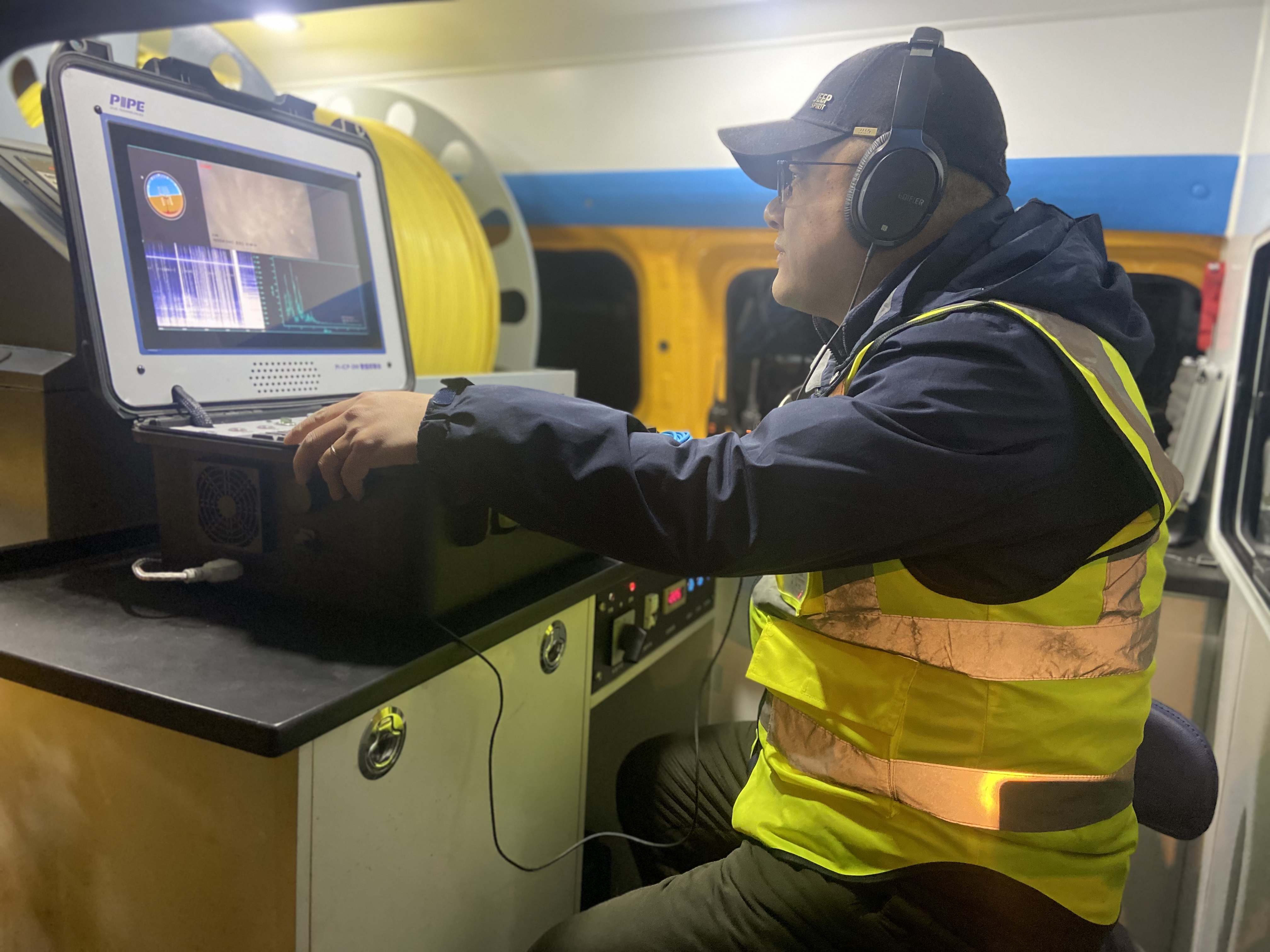 检测中,工作人员选取合理梯口位置,将带压检测专用探头放入管道,成功获取了该段管道在运行状态下的音频和视频资料,为后续的修漏工作提供了精准的数据依据。