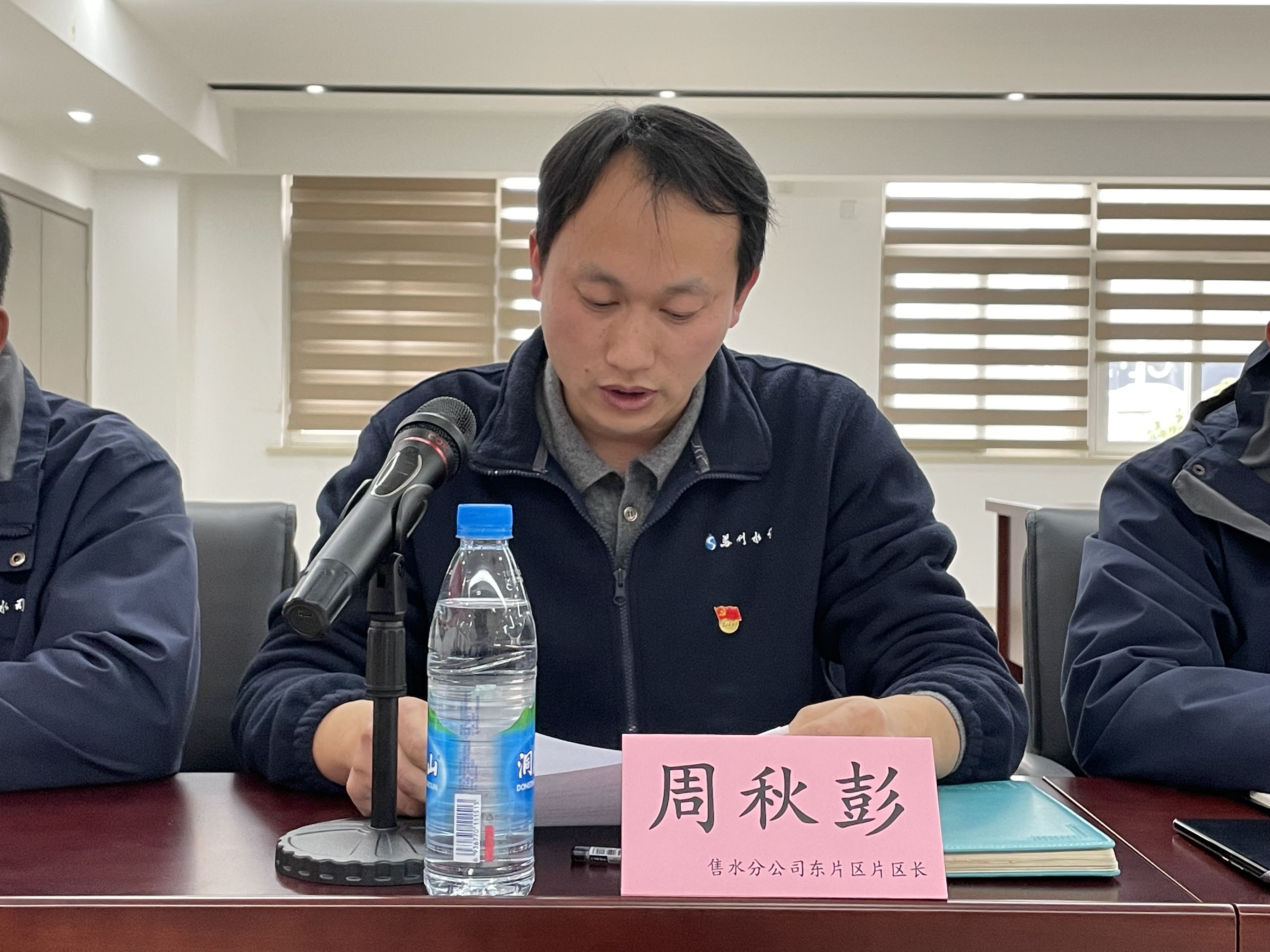 2月23日下午,市自来水公司召开重点岗位人员工作动员会,公司党委副书记、副董事长、总经理钱勇,党委委员、纪委书记、工会主席夏亚军,党委委员、副总经理蒋福春、党委委员、总工程师纪永超出席,公司科一科二岗位近50人参会。