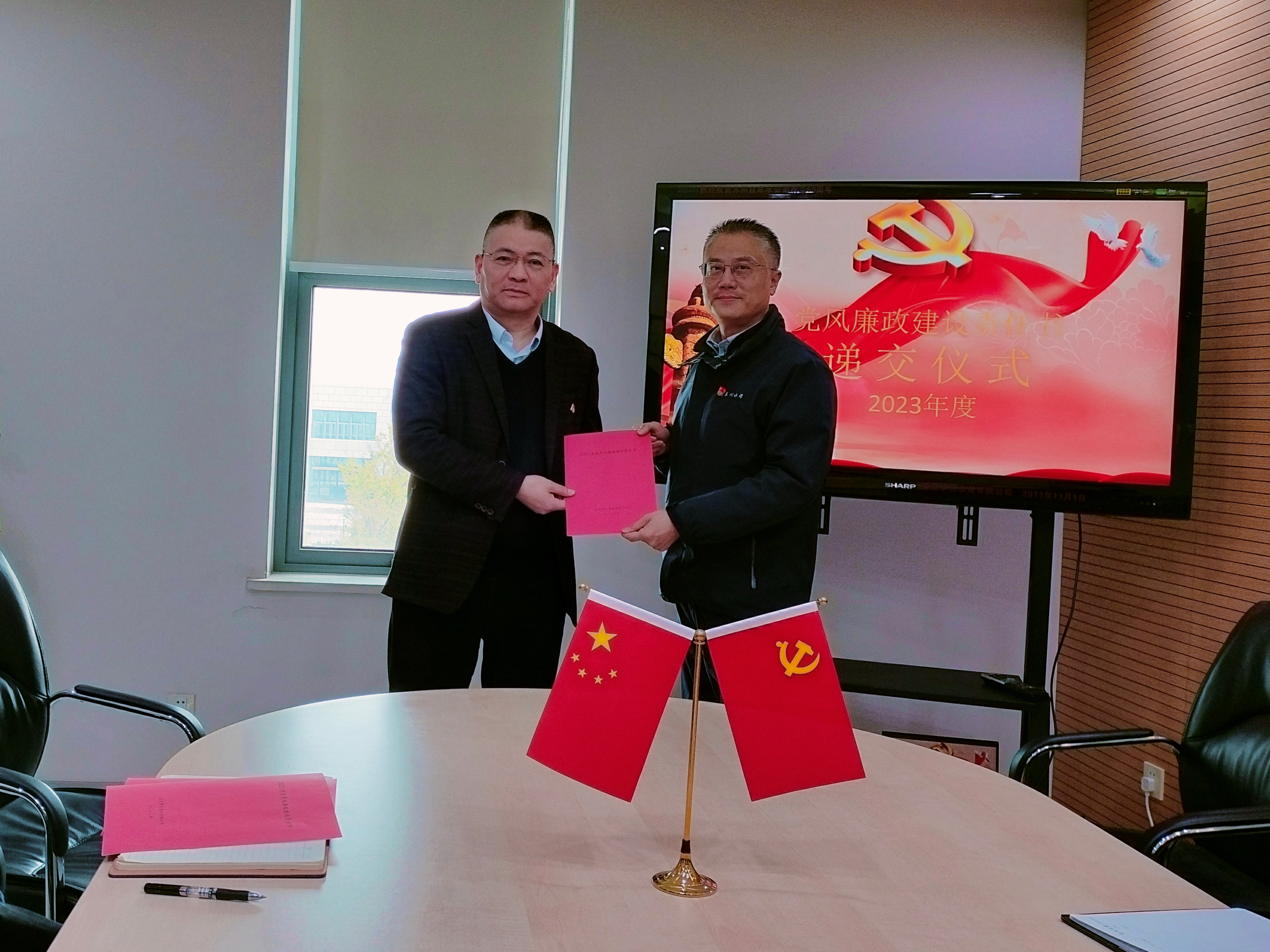 会上传达学习中央纪委二次全会,省、市纪委三次全会精神,举行《2023年度党风廉政建设责任书》递交仪式,各基层党支部书记、纪检委员参加并现场递交《党风廉政建设责任书》。会议强调,2023年是贯彻党的二十大精神开局之年,各党支部要履行好全面从严治党“两个责任”,纪检部门要继续聚焦主责主业,认真履行职能职责,牢记“三个务必”,不断提升纪检监察工作质效。