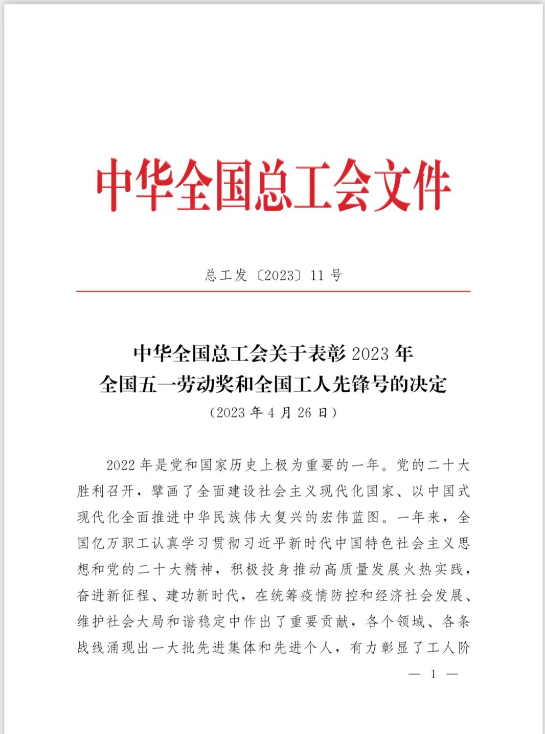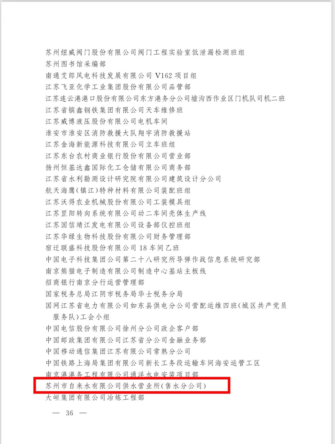 近日,从中华全国总工会传来喜报,江苏省城市足球赛官网供水营业所(售水分公司)获2023年 “全国工人先锋号”。