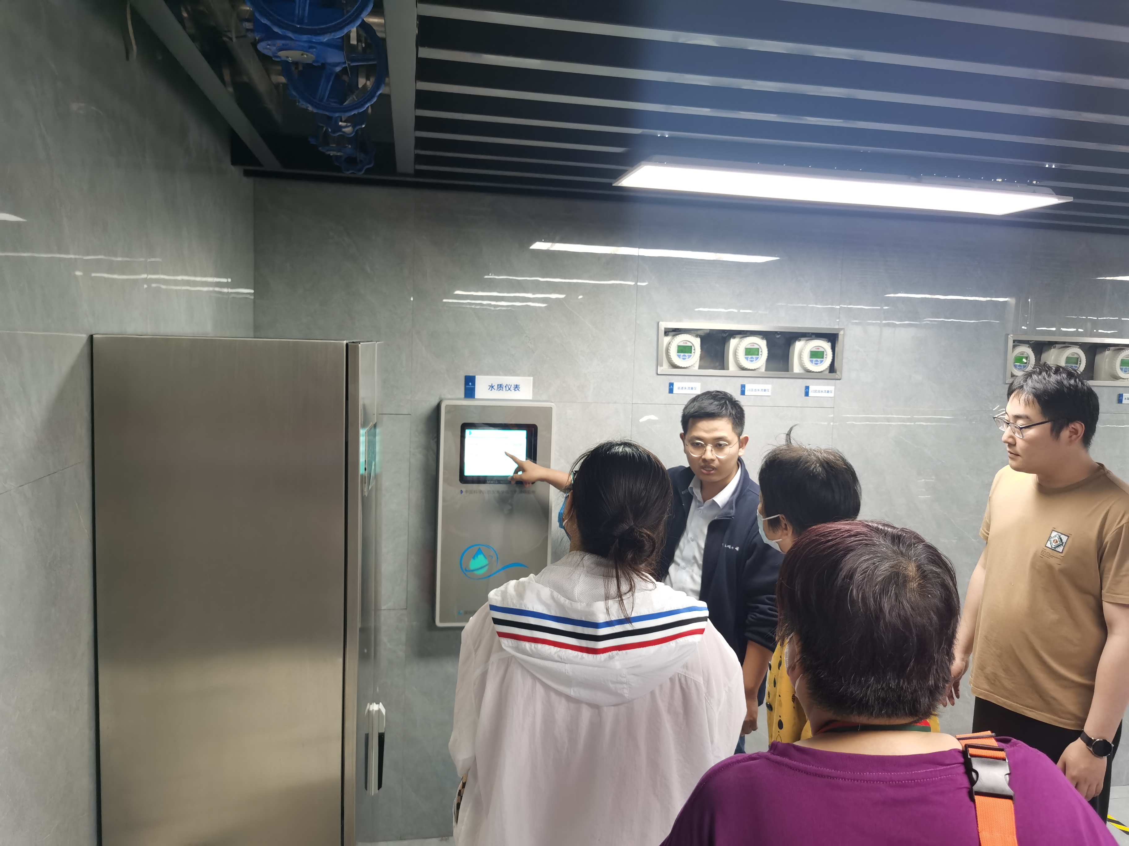 本次参观活动在万科金域平江小区二次供水泵房举办,工作人员为来访群众介绍公司老旧泵房改造历程、水箱清洗维护标准、泵房日常维护标准、水质监测数据、增压供水分区等二次供水相关知识。来访群众纷纷表示,原先不太了解二次供水,通过今天的参观,居民们看到了泵房整洁干净的环境、高质量的运维标准,以后可以更安心地饮水、用水。
