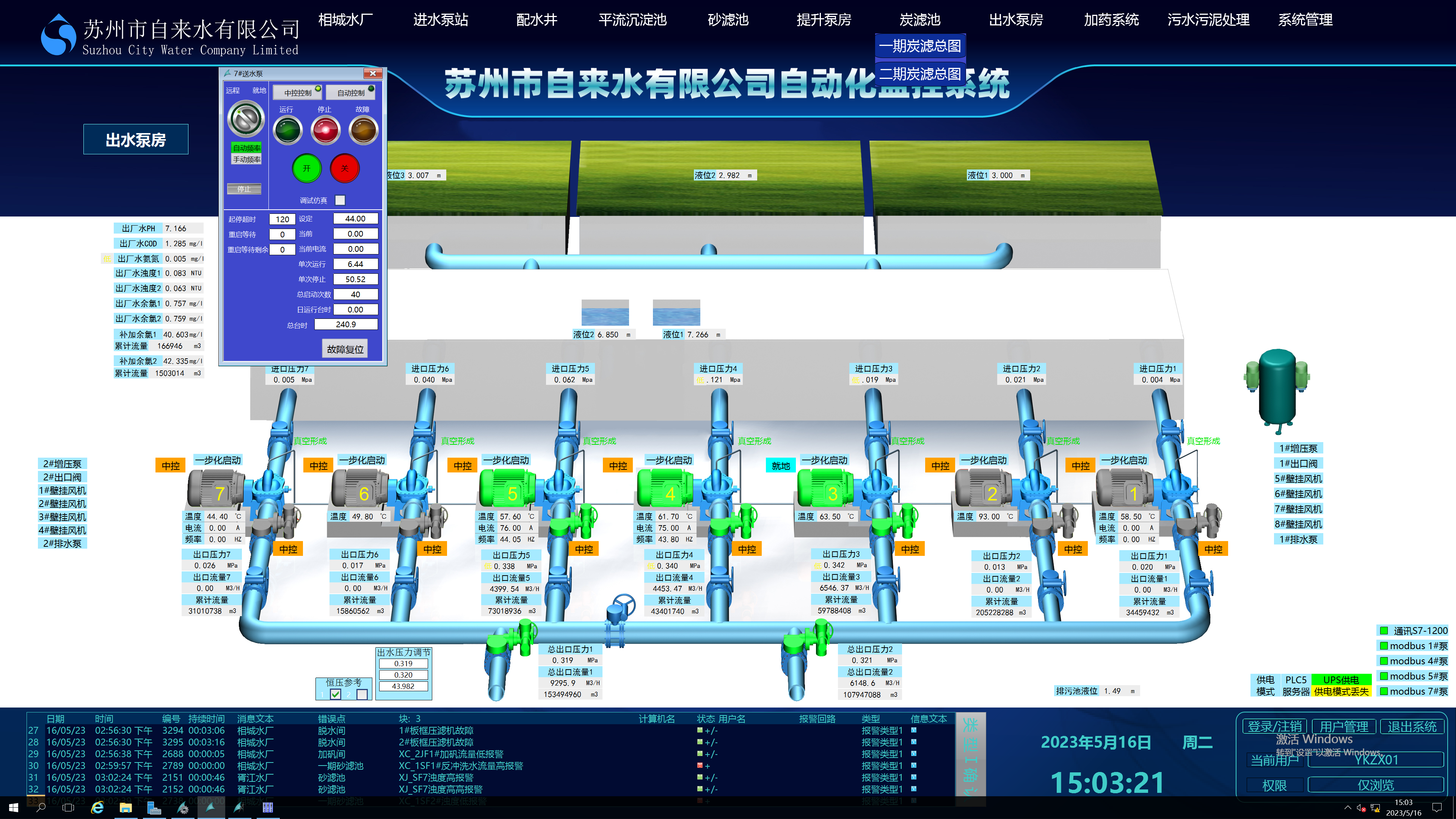 “三厂自动化集控”项目是把三厂的生产工艺自动化操作和生产过程数据显示集成在一个系统中,做到从取水泵房到清水泵房的全流程集中控制,从而提高生产运控的科学化管理。该项目自去年6月启动以来,制水分公司技术团队根据项目内容,扎实推进项目进度,并取得阶段性成果,于8月25日组织召开该项目进度审查汇报会议。会上,技术人员详细汇报了项目的进度情况,包括已完成了三厂的水厂生产工艺控制、阳澄湖取水泵房和渔洋山取水泵房的自动控制和数据显示调试工作等,并在会议现场生动展示了三厂集控项目的实时人机界面。