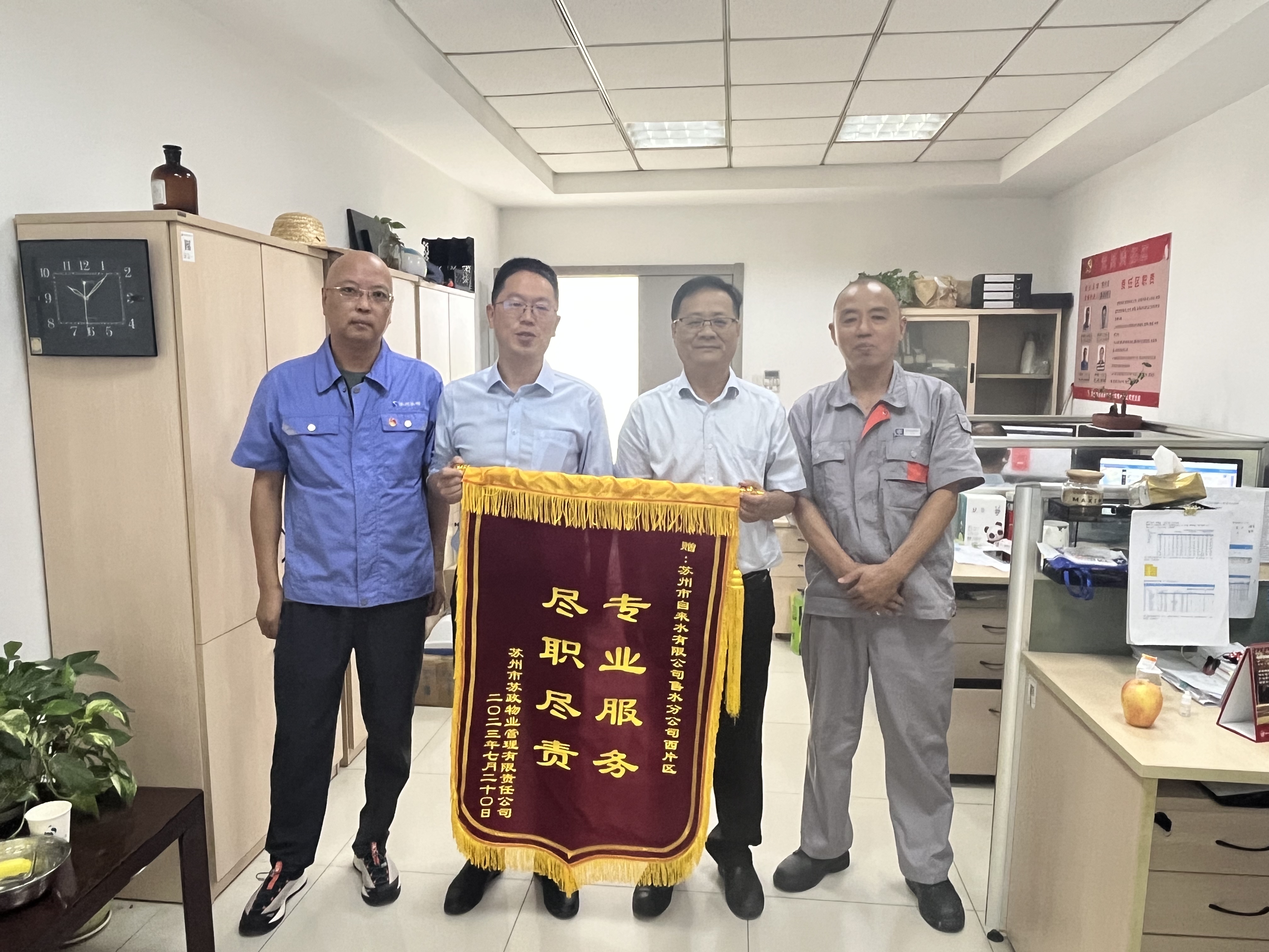 近日,江苏省城市足球赛官网市机关事务管理局、江苏省城市足球赛官网市市政物业管理有限公司代表来到江苏省城市足球赛官网售水分公司,将一面 写有“专业服务 尽职尽责”的锦旗赠予西片区,对片区工作人员尽职尽责、细致周到的工作态度表示高度赞扬。