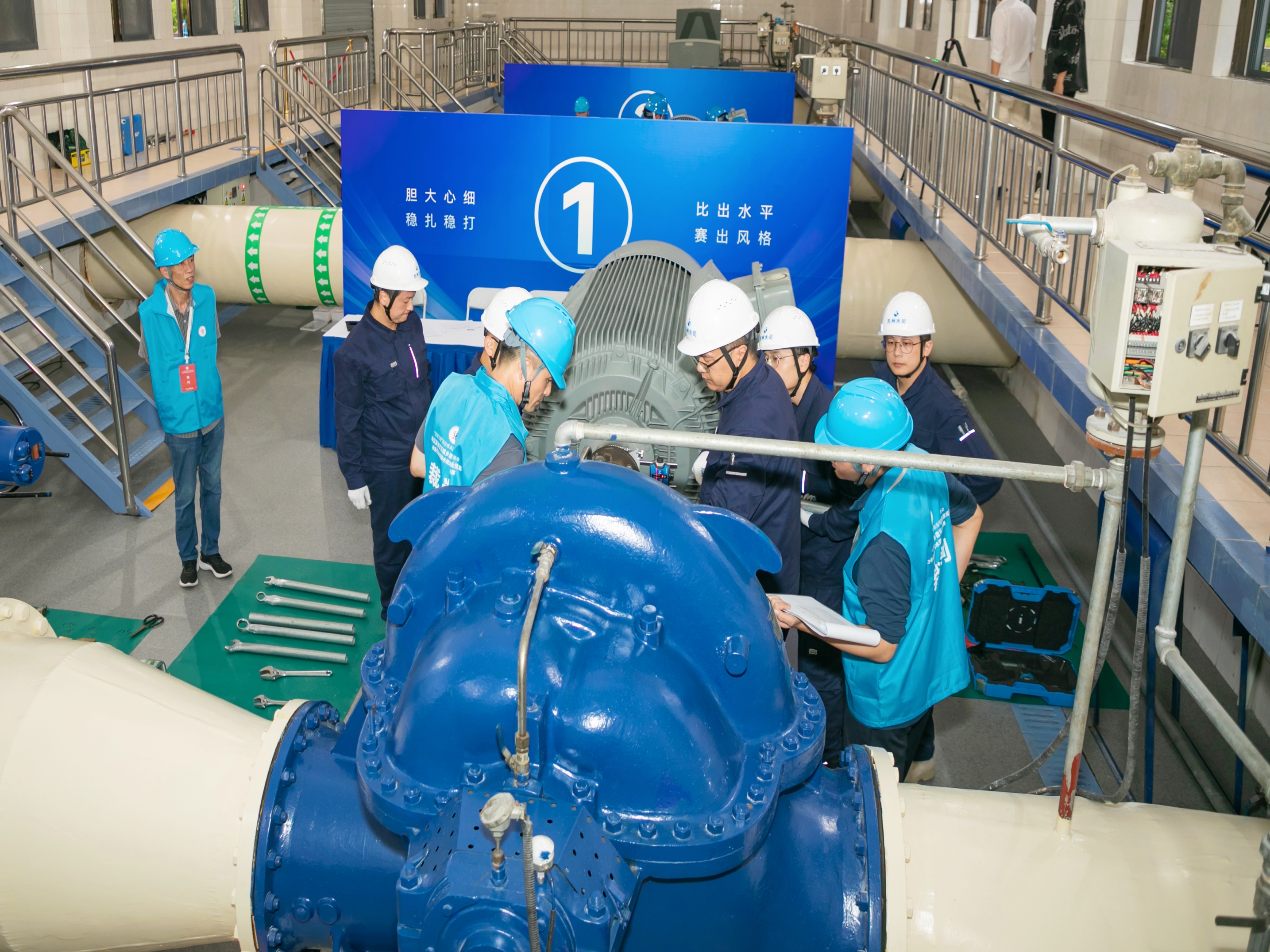 本次竞赛自2023年7月开启市级选拔,历经一个月的市内角逐选拔,市自来水公司制水分公司职工吴康以第一名的成绩成功进入决赛,并与其他四位选手组成江苏省城市足球赛官网代表队,同其他来自全省各地的12支代表队进行比拼竞争。省决赛以《城镇供水行业职业技能标准》中的三级技能难度要求进行比赛,考核内容由理论考试和技能实操两个环节组成,其中技能操作比赛采用单人赛与团体协作赛相结合形式,包括高压变频器及机泵组巡检和水泵机组平车。比赛期间,选手吴康有条不紊的进行各项技能操作,依次开展高压变频器、水泵及电机的巡检工作,根据巡检要点精准判断设备故障点并完成巡检结果记录,展现了从业人员的安全生产素质和技能水平。