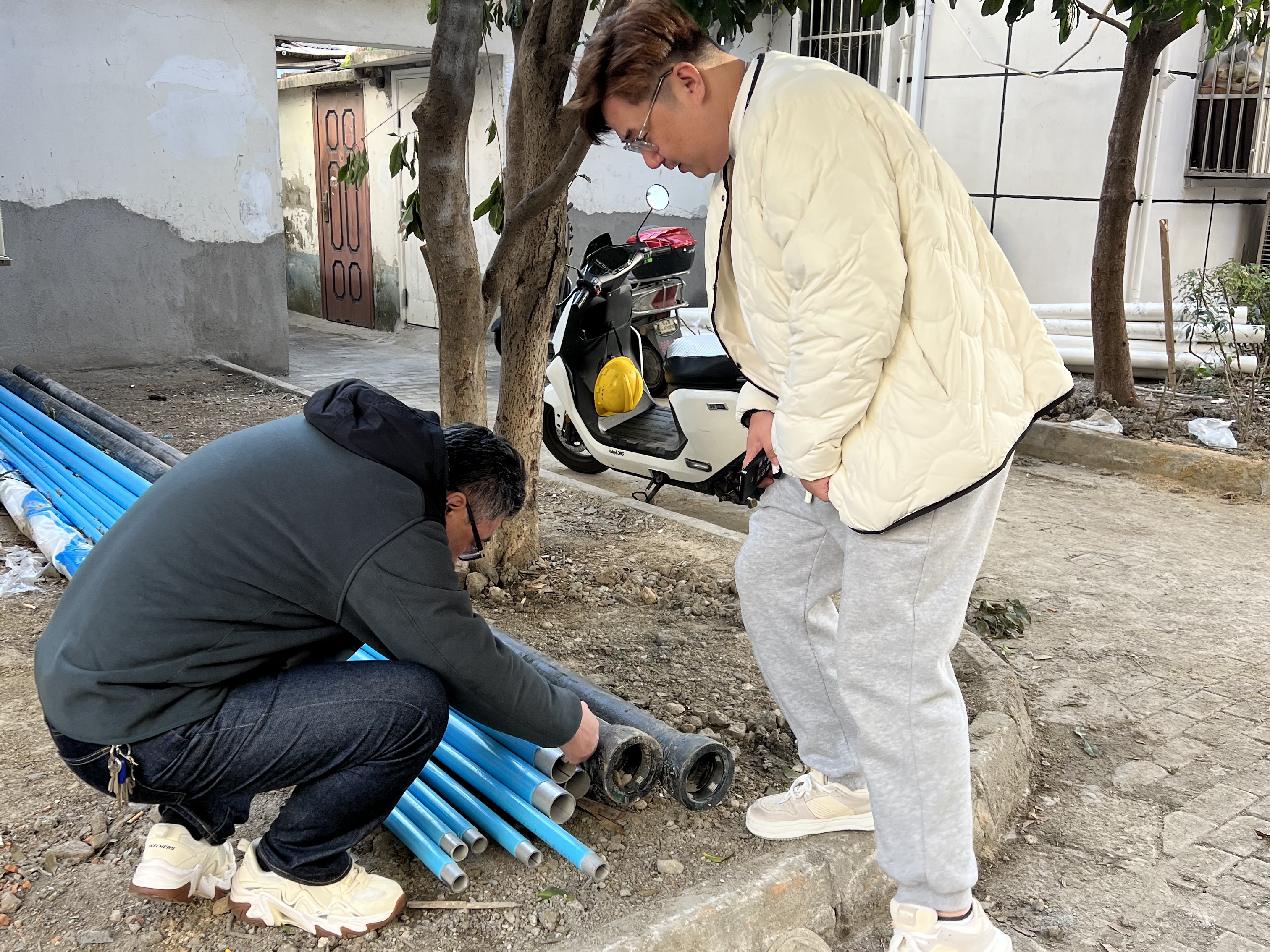 近日,合约处前往姑苏区宏葑一村小区,对老旧小区表前管及表箱改造工程项目进行现场勘查。