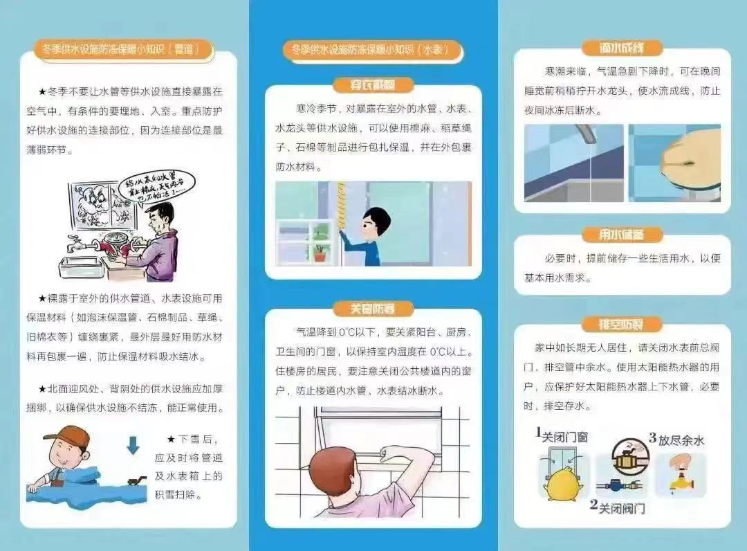 入户防冻宣传再升级:积极与各街道、社区、物业等单位沟通,结合安居助困项目的开展,向薄弱区域居民普及供水设施防冻知识,并向内部冰冻用户发送“点对点”温馨提示短信共计1464条,全力提升居民防冻意识。