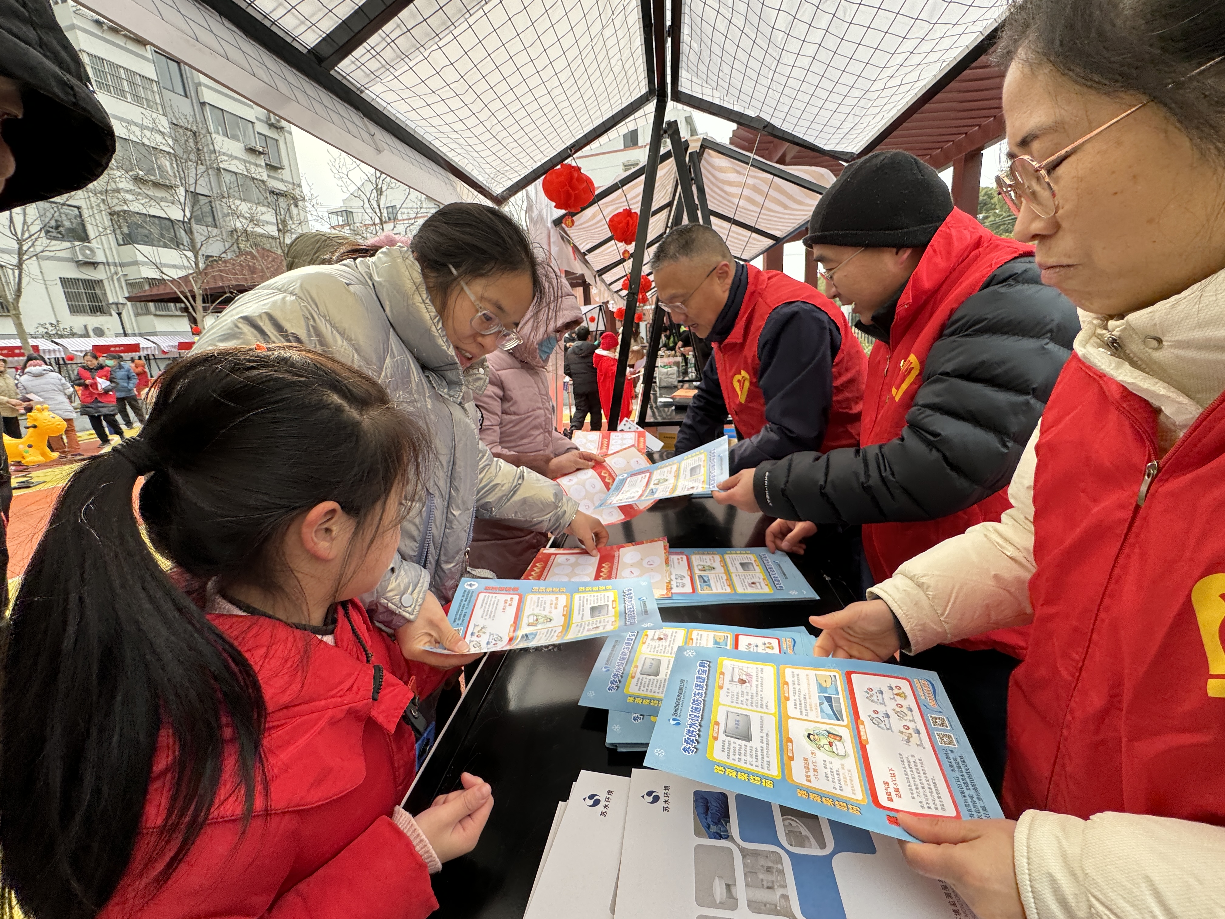 活动现场,志愿者们向来往居民分发冬季用水防冻保暖知识宣传单,提醒居民做好供水设施防冻保温,并详细介绍了安全用水及节水小常识等。同时,提供关于水质检测、户表安装、水费缴纳方式及服务承诺等方面的咨询服务,积极引导居民关注公众号并完成实名绑定,指导用户足不出户办理水费查询、报装、过户、缴费、报修、阶梯人口变更等各项用水业务。此外,现场征集了居民反馈的各类用水问题,详细记录地址后即时安排上门服务。活动当天,累计为5户居民检查解决用水问题,得到了用户的好评与赞扬。