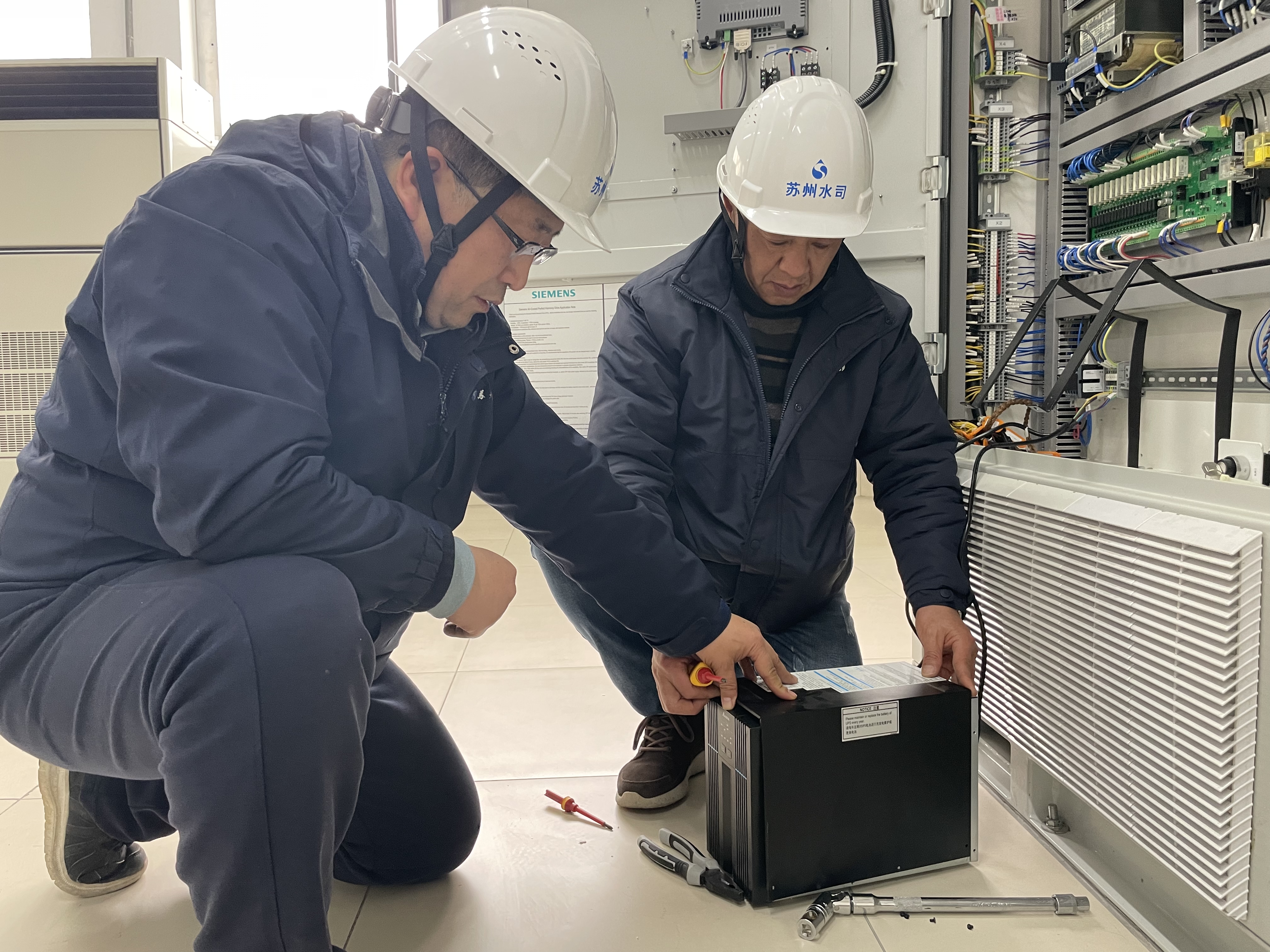 相城水厂工作人员在节前检查中发现,阳澄湖取水泵站高压变频器UPS状态不稳定、参数指标欠佳,检测后判定为电池老化造成。当即采取临时措施,恢复变频器运行,随后技术人员自主完成蓄电池更换、检测、设备调试工作,消除了潜在风险,节约了维修成本,提高了泵站的运行安全。