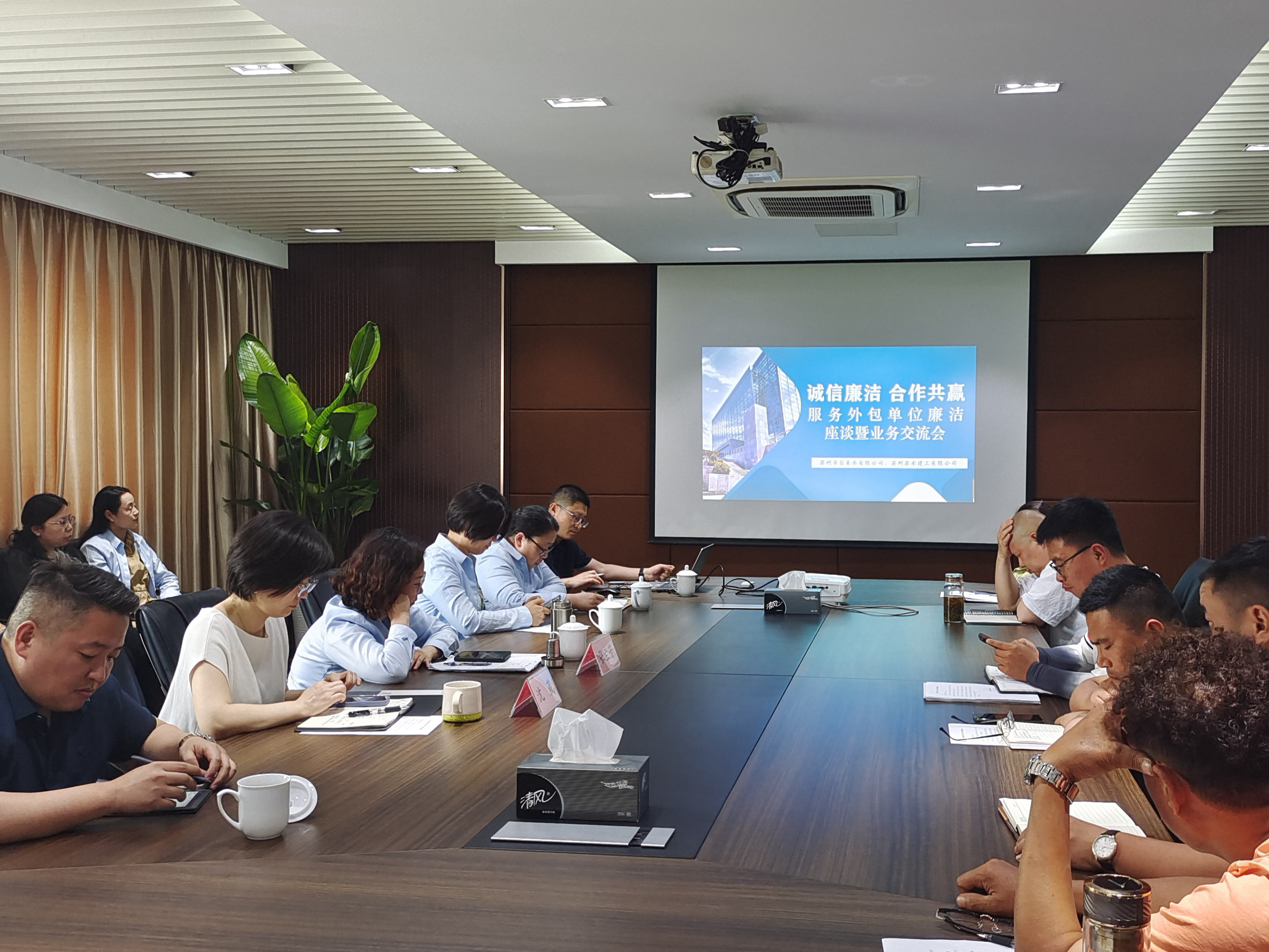 为进一步强化工程建设领域廉洁风险防控,近日,市自来水公司与苏水建工公司联合召开“诚信廉洁·合作共赢”服务外包单位廉洁座谈暨业务交流会。