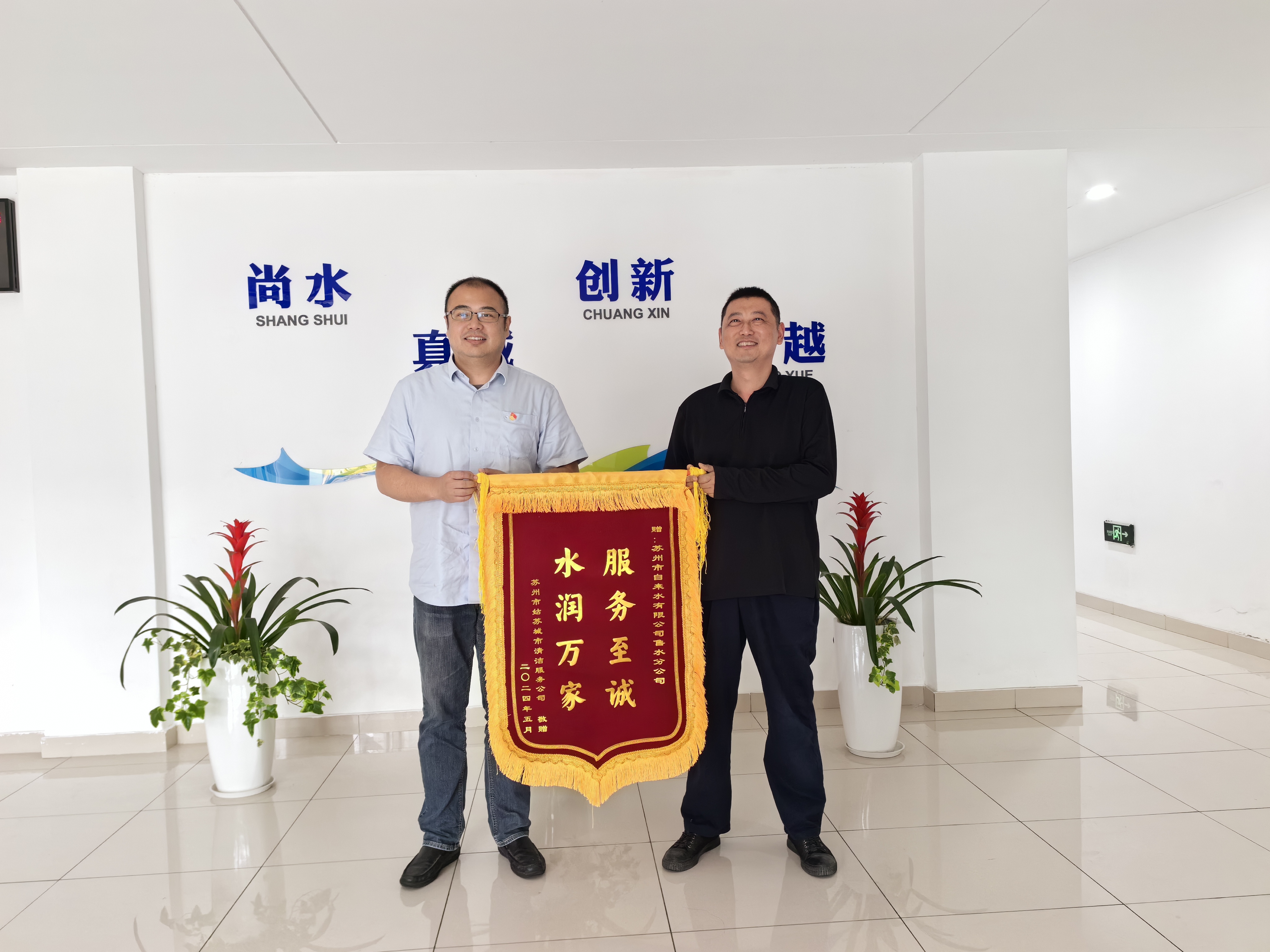近年来,为规范城市道路清洁用水,公司在主干道上为相关清洁单位设置了专门的取水栓,并定期开展巡检和设备维修,保障了清洁服务公司的用水需求。2023年以来,公司投入使用两台智能取水设备,实现对取水频次、取水车辆、取水水量等信息的远程记录,方便清洁服务公司对下属取水车辆进行有效监控。姑苏城市清洁服务公司特此送来锦旗,对公司历年来的用心服务表示衷心感谢。