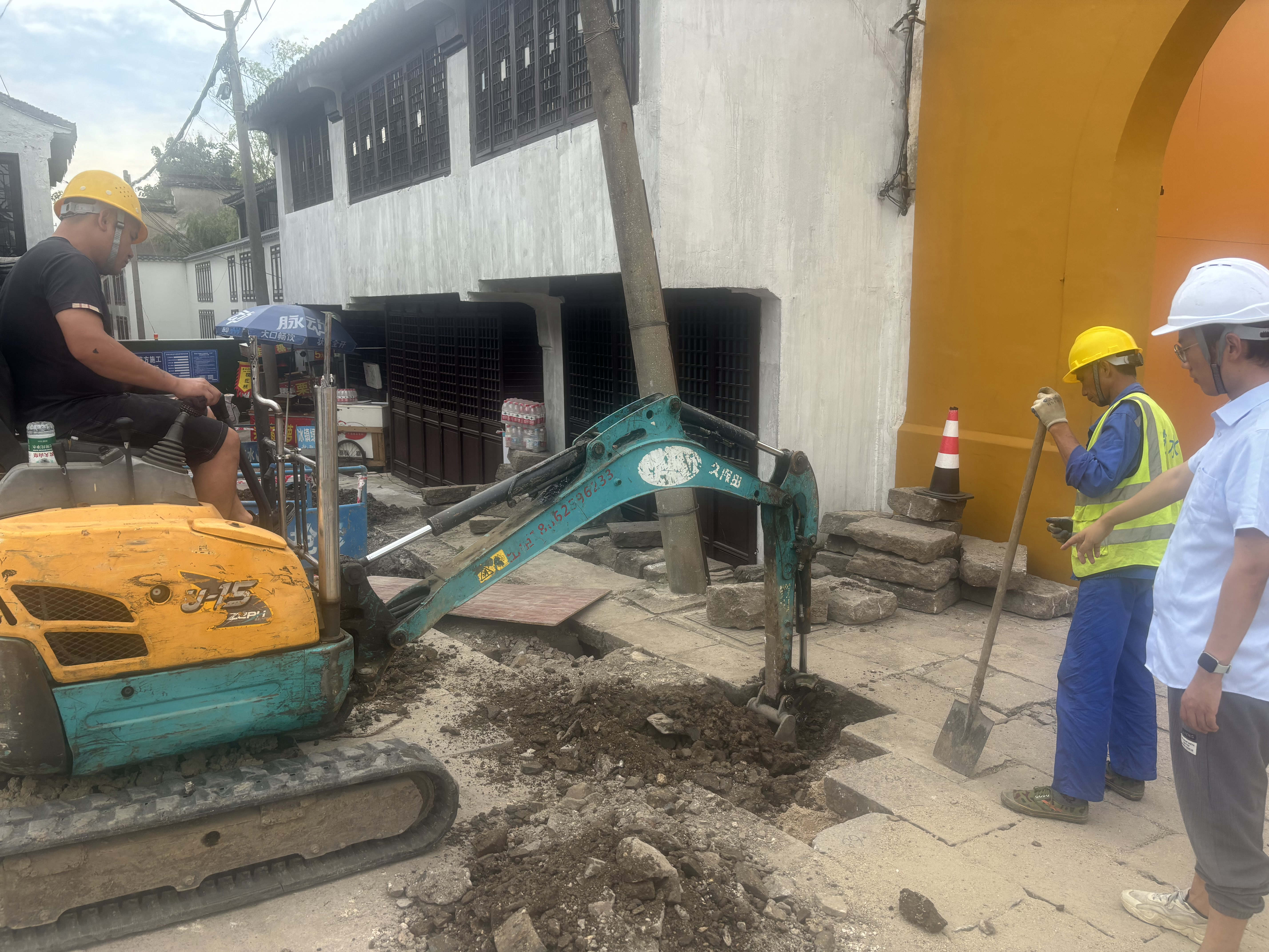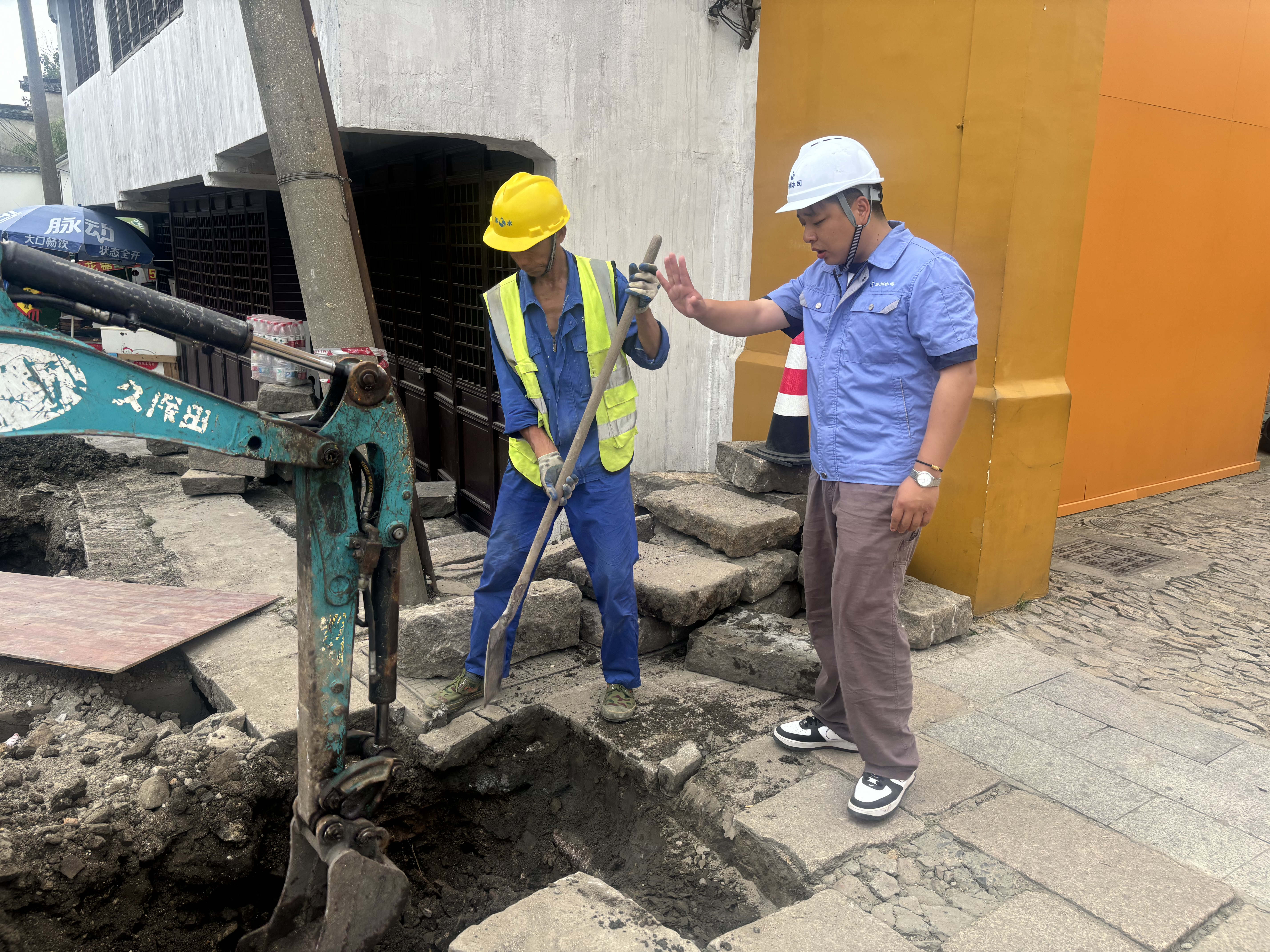 为进一步保证到户水质,对老旧管网管道材质进行了提升,将原有管道更新为球墨铸铁管。因部分施工路段交通流量较大,沿街两边涉及商户居民较多,工程人员积极联系制定交通疏导方案,提前为商户增设了临时供水点,提供应急供水保障,尽可能降低施工带来的影响。
