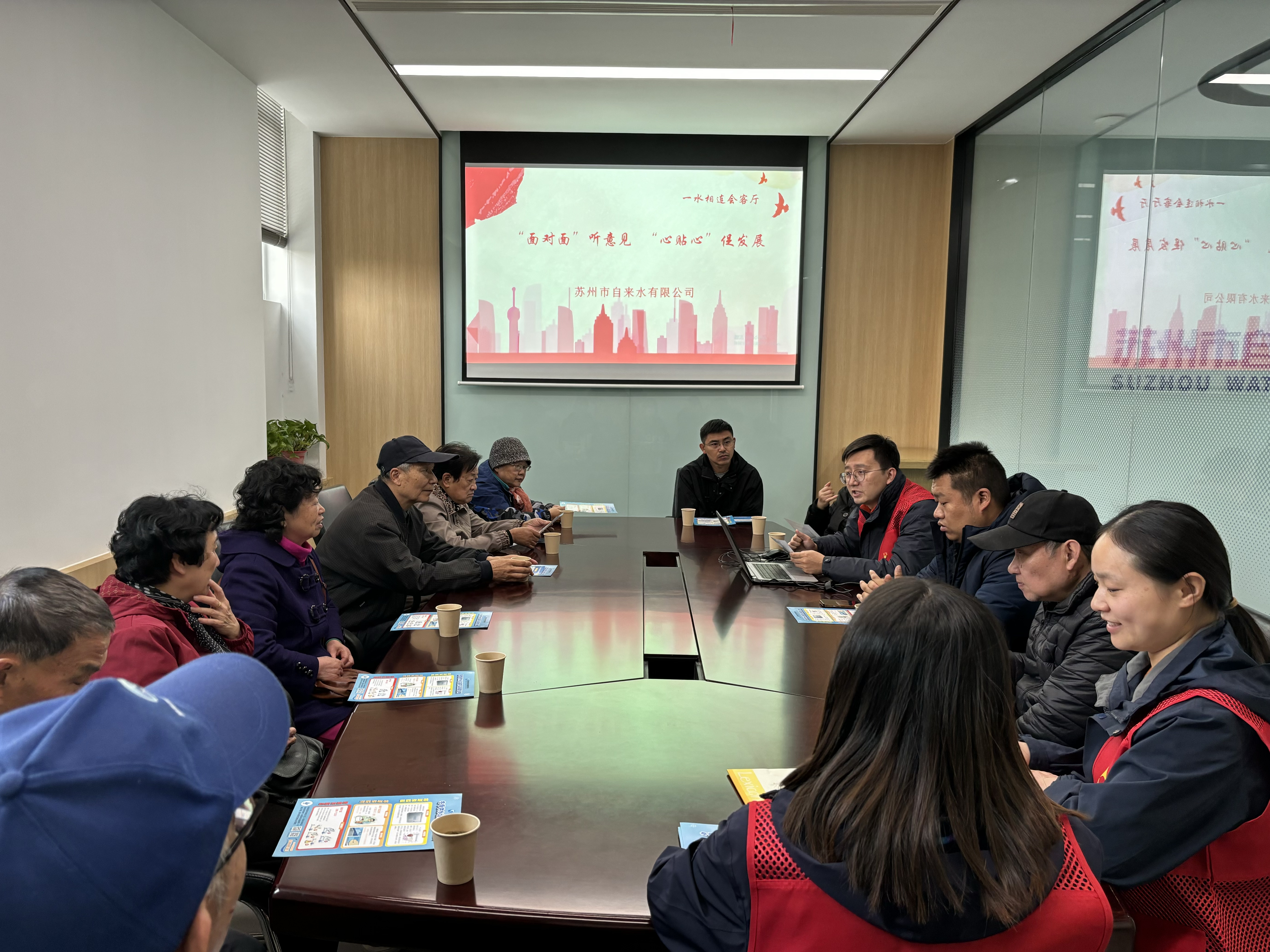 12月4日,市自来水公司组织开展“一水相连会客厅”活动,邀请西美社区代表及居民代表走进供水营业厅,“沉浸式”感受办事过程,“零距离”体验办事服务,为供水服务再优化再提升建言献策。