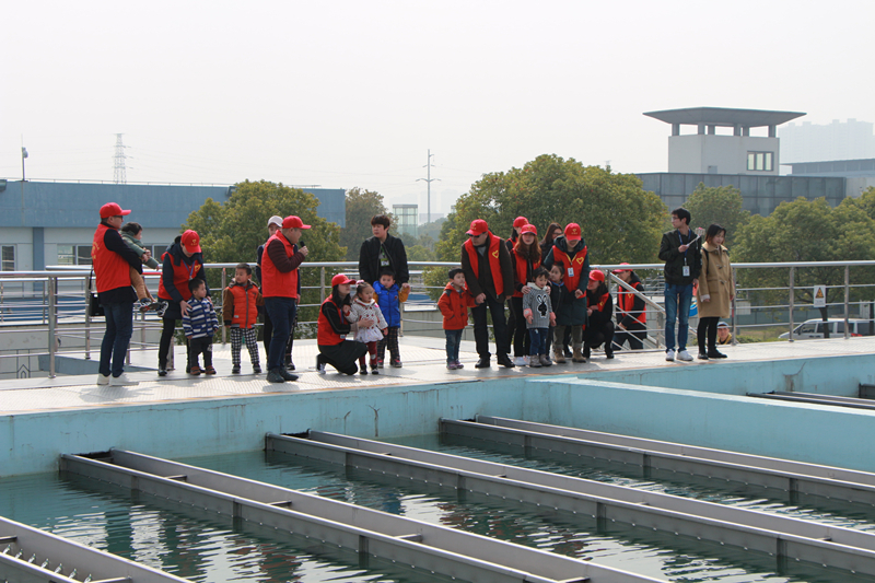 在志愿者们的带领下,小朋友们井然有序地参观了沉淀池、砂滤池、炭滤池。为了让孩子们能理解复杂的生产工艺,工作人员用深入浅出地比喻给孩子们讲解自来水生产的混凝、沉淀、过滤、消毒等工序,不厌其烦地解答他们的各类提问,给小朋友们上了一堂生动的节水教育课。