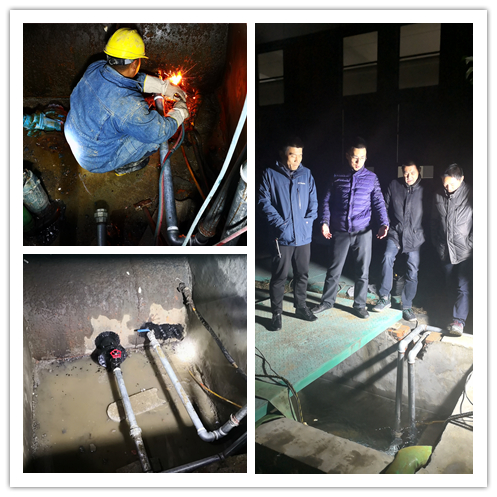 由于管道使用年久腐蚀开裂,11月28日上午,白洋湾水厂I路清水管与取样水管连接接口处突发爆管。水厂第一时间与公司调度中心取得联系,调整I路出水水量,在允许范围内降低出厂压力,控制漏点水量。同时,白洋湾水厂与苏水实业公司积极沟通,商讨、细化抢修方案,于当晚连夜组织抢修施工。在供水管网所的全力配合下,抢修工作于当晚22时正式开始,关阀、抽水、焊接、防腐等各项操作有序展开,公司调度积极调配供水水量。