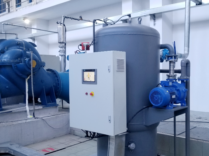 该项目于9月中旬开始施工,10月下旬完成设备安装工作。同时在渔洋山自控系统改造工作的协同配合下,目前已进行渔洋山泵房上位机控制抽真空、水泵启停、阀门启闭等联动调试工作,实现了上位机一步化开停泵。同时,常吊真空系统缩短了水泵启动的准备时间,提高了生产保障程度。随着自控系统改造的继续进行,可进一步实现水厂中控室对渔洋山泵房的远程开停泵操作,从而为渔洋山泵房的少人、无人化值守做好准备。