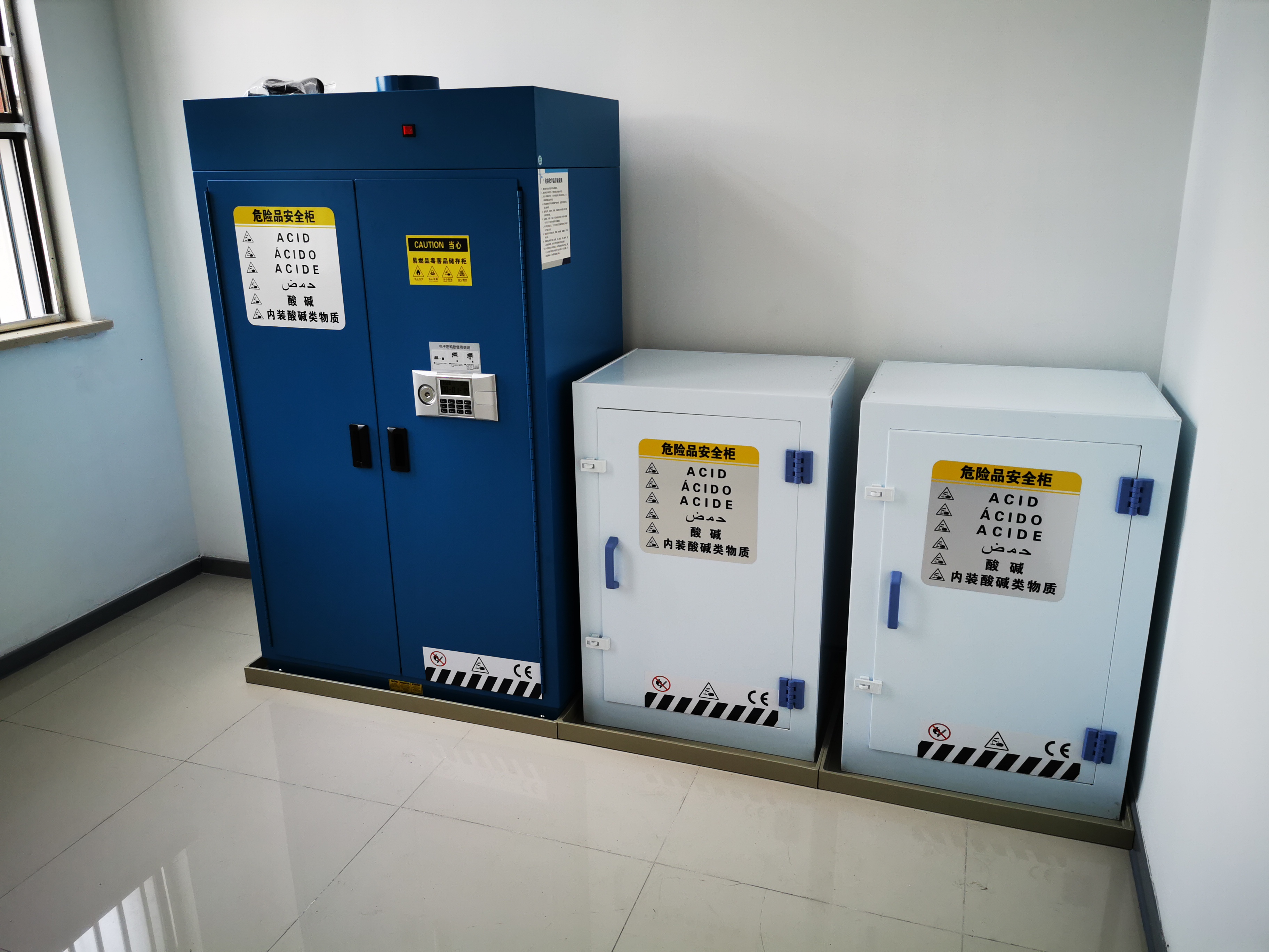 整改后,各厂实验室药品间配置了便于分类存放化学品试剂的专业防爆柜和酸碱柜,同时配备了防爆空调、防爆灯、防爆风机、防爆开关和静电消除器等设备,大幅提升了药品存放间的防爆等级。不仅如此,为了预防有机蒸汽泄漏及造成火灾的发生,实验室还配备了有机气体侦测联动排风系统、消防报警系统和自动灭火装置,有效提高了实验室的安全等级。