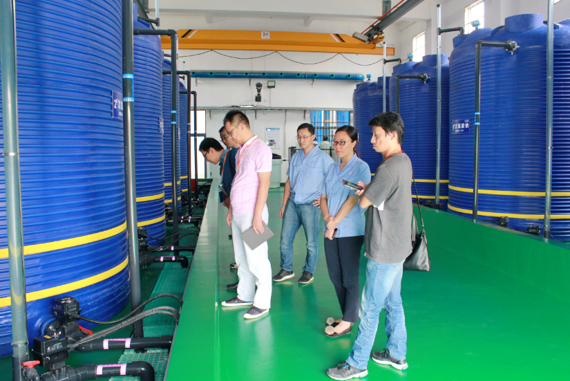 昆山水司一行首先实地查看了次氯酸钠系统,对该系统的方案设计、设备选型等方面表示了高度认可。随后,一行人在厂领导的陪同下,有针对性地调研了加药间、臭氧车间、中控室、厂化验室等部位,双方就水厂设备的使用情况、班组人员的配置情况、日常运行管理情况等内容展开了深入交流。