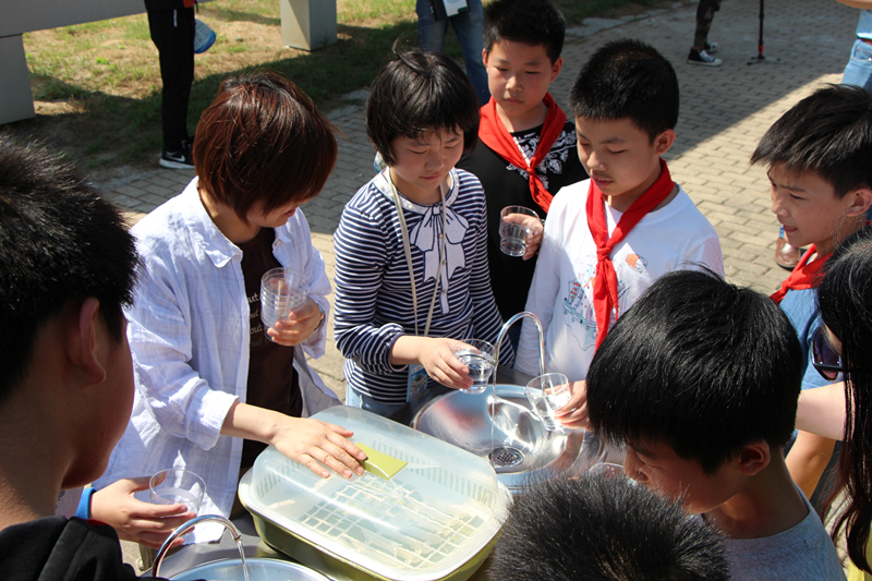 在水厂工作人员的引领下,学生们先后参观沉淀池、砂滤池和炭滤池,听取讲解员关于水厂概况和制水工艺流程的介绍。随后,师生们品尝了香甜可口的直饮水,并对水厂优良的水质赞不绝口。最后,学生们就所关心的制水问题进行提问,讲解员一一回答。