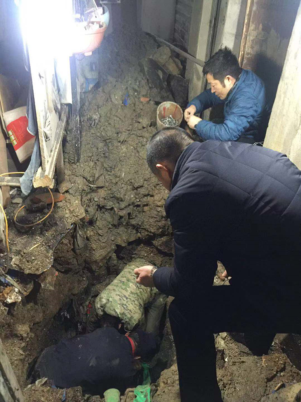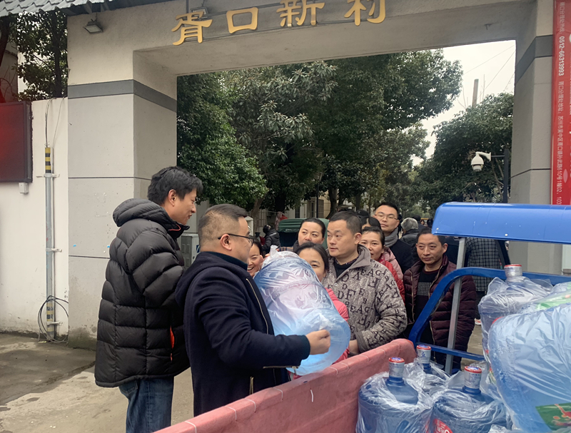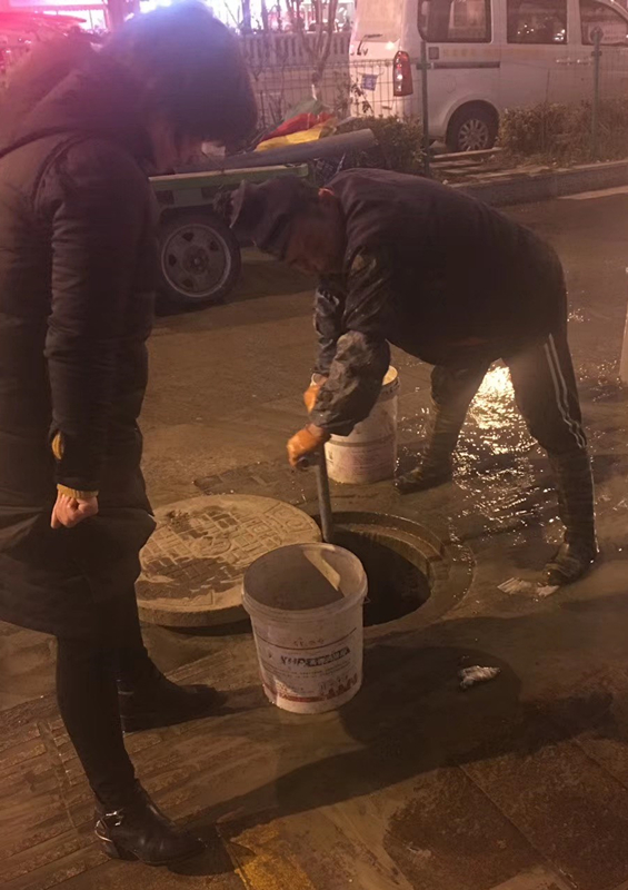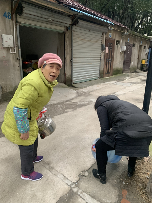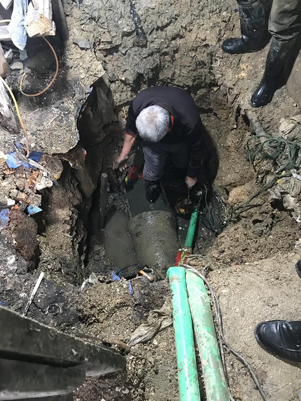 弄堂内空间狭小,机械开挖设备无法作业,在人工开挖过程中,发现破损管道正上方有一根DN400雨水管连通胥口农贸市场河道,移除雨水管将引发河水倒灌。经现场查看,立即制定应急方案,破管、截流、抽水、抢修。由于实施周期略长,考虑到元宵节的特殊意义,胥口水司各部门立即行动,晚饭前向受停水影响的胥口新村居民发放桶装矿泉水,为孤寡老人送水上门,让每一户居民都能在元宵节煮上一碗热腾腾的汤圆。