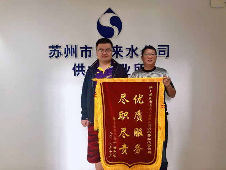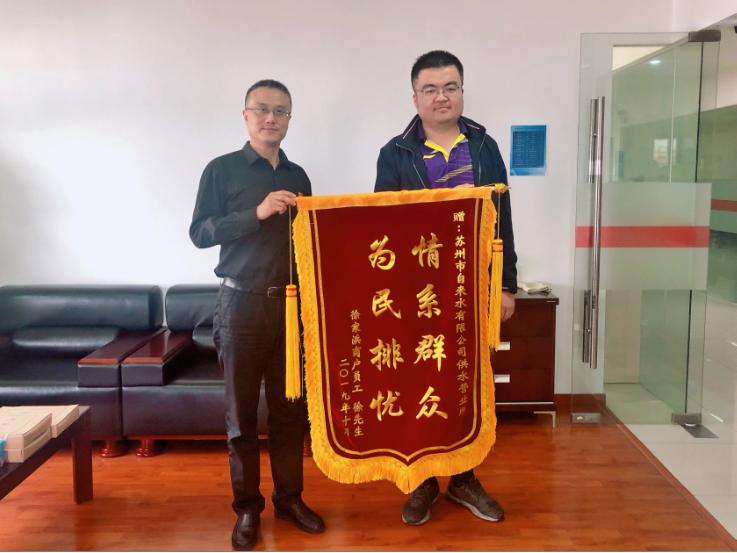 10月22日,供水营业所收到来自徐家浜商户送来的两面锦旗,感谢营业所的优质服务、尽职尽责。