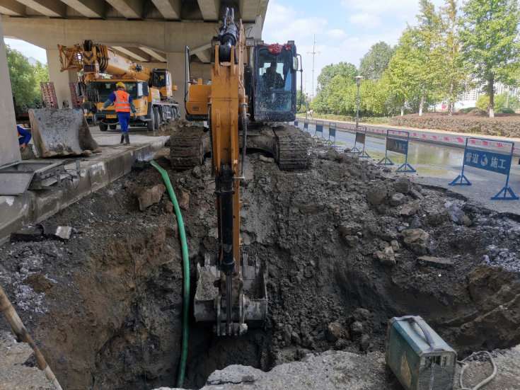 该管道为相城水厂浑水管,位于G312新区高架桥下,现场交通流量较大,施工防护要求高,合约处得知情况后,第一时间赶赴实地查勘,包括破碎路面面积、开挖土方量、管道抢修方式等多个环节。经查勘确认,审计人员掌握了施工现场的第一手资料,为今后的项目审计留下了重要的图片和测量资料。