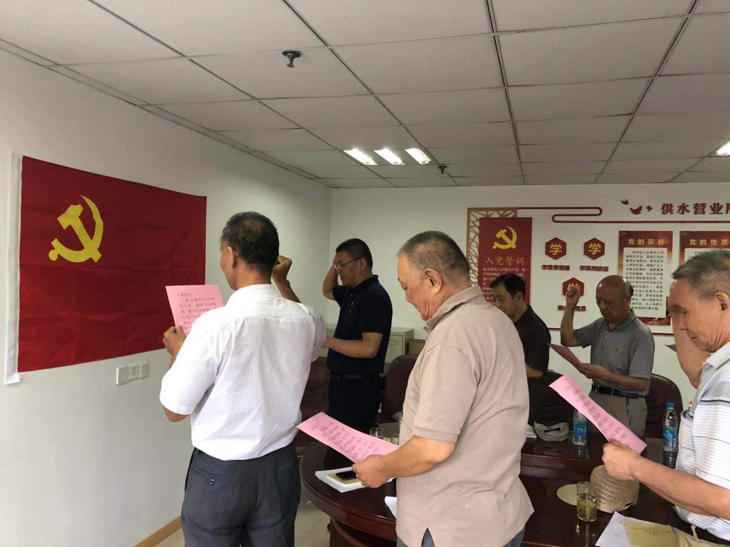 最后,在党委书记、董事长孙林忠的带领下,离退休支部党员一起面向党旗,共同重温入党誓词,再次激发了不忘入党初心,积极发挥余热的爱党、爱国、奉献热情。