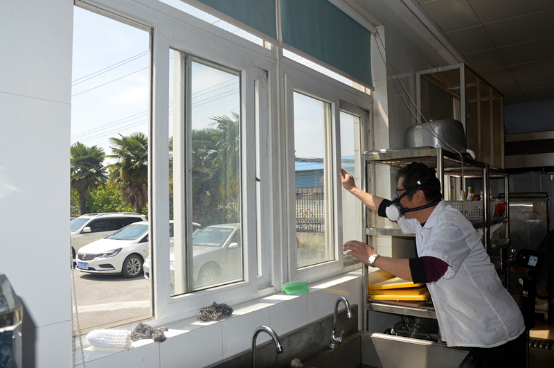 演练模拟“食堂发生燃气泄漏”过程。首先食堂职员发现燃气管道泄漏即刻告知厨师,厨师立即佩戴防毒面具关闭食堂液化气阀门,关闭炉灶火源、燃气罐总阀、切断电源并开窗通风,同时由食堂职员第一时间通知物业管理人员,并逐级上报至安全管理员,按照演练方案,开展应急处置。义务消防员在安全管理员的指挥下,佩戴防毒面具进入现场查看有无人员中毒受伤情况,同时现场组织无关人员撤离现场,拉起警戒隔离线。义务消防员在确保液化气无再次泄露危险后,物业移交维修单位抢修,安全管理员向总指挥汇报情况。整个演练过程井然有序,各司其职,最终顺利完成演练。