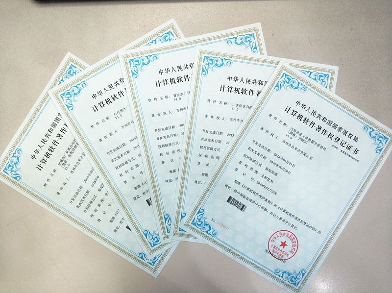 软件著作权分别是《远传水表上传数据分析软件v1.0》、《胥江水厂自控程序v1.0》、《白洋湾水厂自控程序v1.0》、《相城水厂臭氧自动控制系统v1.0》、《二次供水自控程序v1.0》,其中《远传水表上传数据分析软件v1.0》为总工办独立研发,软件应用于水表运行状态分析,应用价值强。5项著作权的成功申报展现了公司内部技术人员的智慧,同时更是公司近年来在国家、省、市级科技项目中人才培养成果的集中体现,既进一步提升了企业核心竞争力,扩展了公司综合管理平台的功能,又为公司今后的发展积蓄了前进的动力。