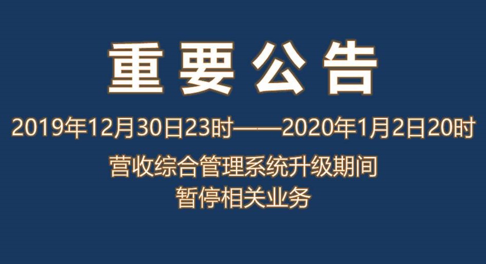 市自来水公司将于2019年12月30日23时—2020年1月2日20时进行系统升级,在此期间将暂停营业大厅的业务办理,公司网站、微信公众号、支付宝水费查询缴费业务同时关闭,由此带来的不便敬请谅解。升级后的营收综合管理系统将大幅缩短用户的办事时间,提高办事效率。
