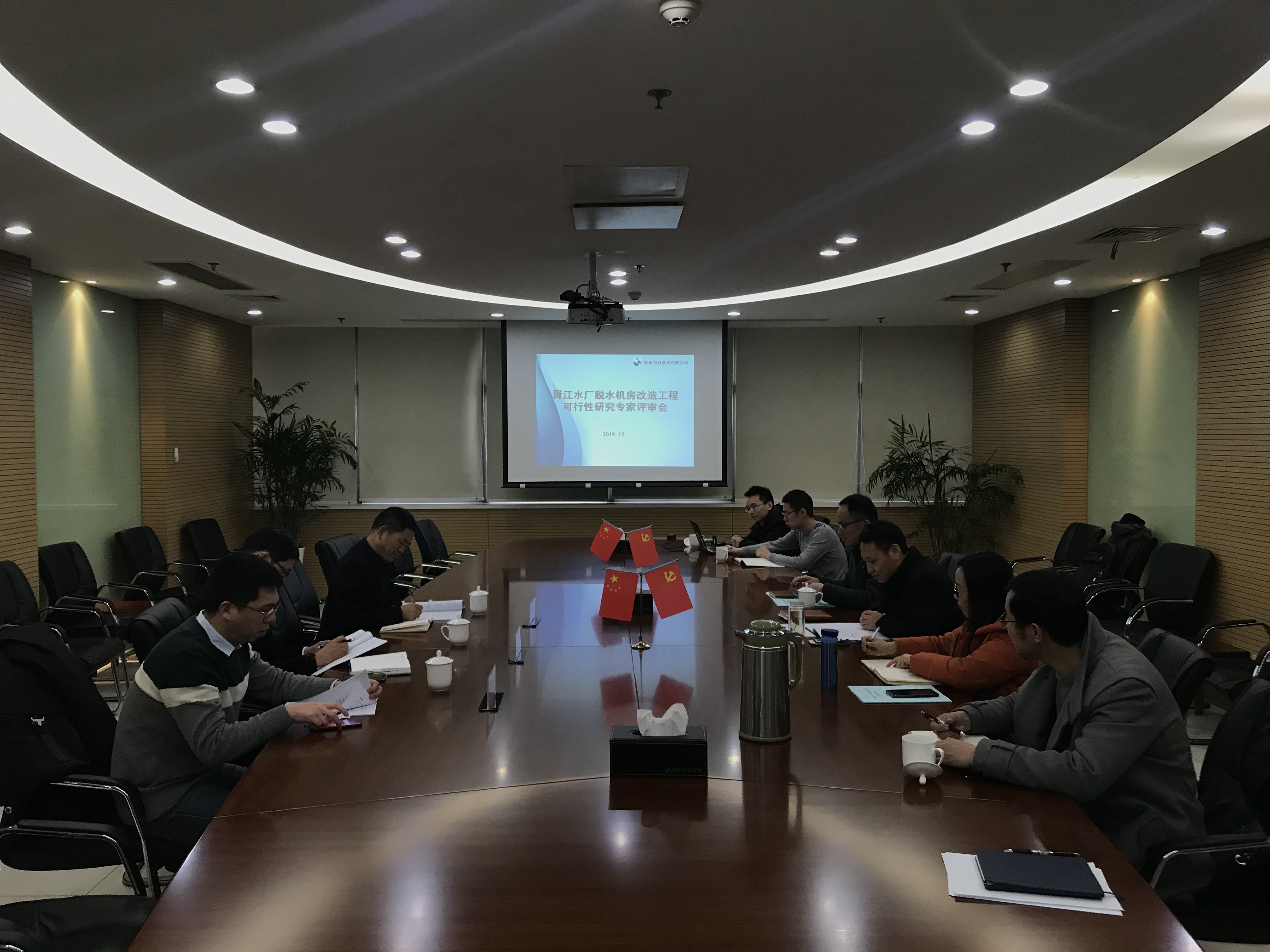 会上大家听取了上海市政工程设计研究总院设计院的可行性研究报告的汇报,经过深入讨论和认真审议,专家组在肯定脱水机房升级改造设备采用板框脱水机方案的同时,从板框机数量配置、泥饼优化传输、污泥减量数据分析以及自控系统匹配等内容提出了意见和建议。同时,专家们指出胥江水厂脱水机房改造工程,可保证水厂排泥水系统稳定运行,实现泥饼减量化,为满足环保部门外运填埋处置污泥含固率要求具有重大意义。