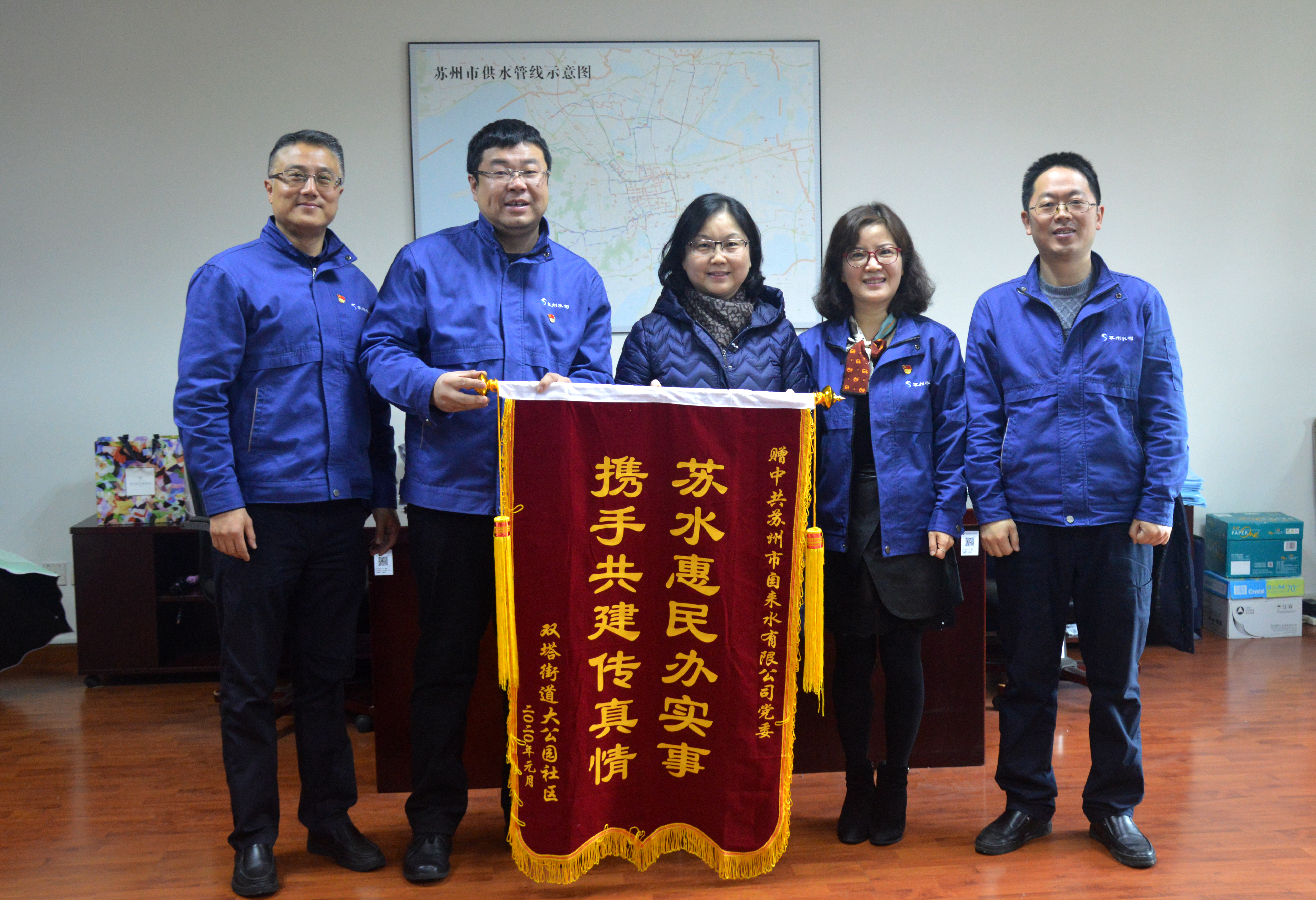 这两面锦旗是对苏水人辛勤付出的肯定,接下来,我们将一如既往地做好安全供水、优质服务工作,努力为用户提供更加便捷、高效的服务。