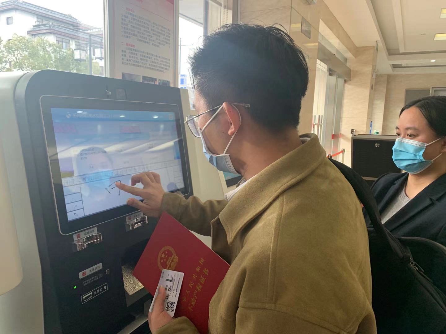 前来过户的方先生在业务员的指引下很快就完成了业务办理,他对自助终端机赞不绝口:“不用排队就能办理业务,界面清晰操作方便,真是越来越智能化了,确实方便了大众。”