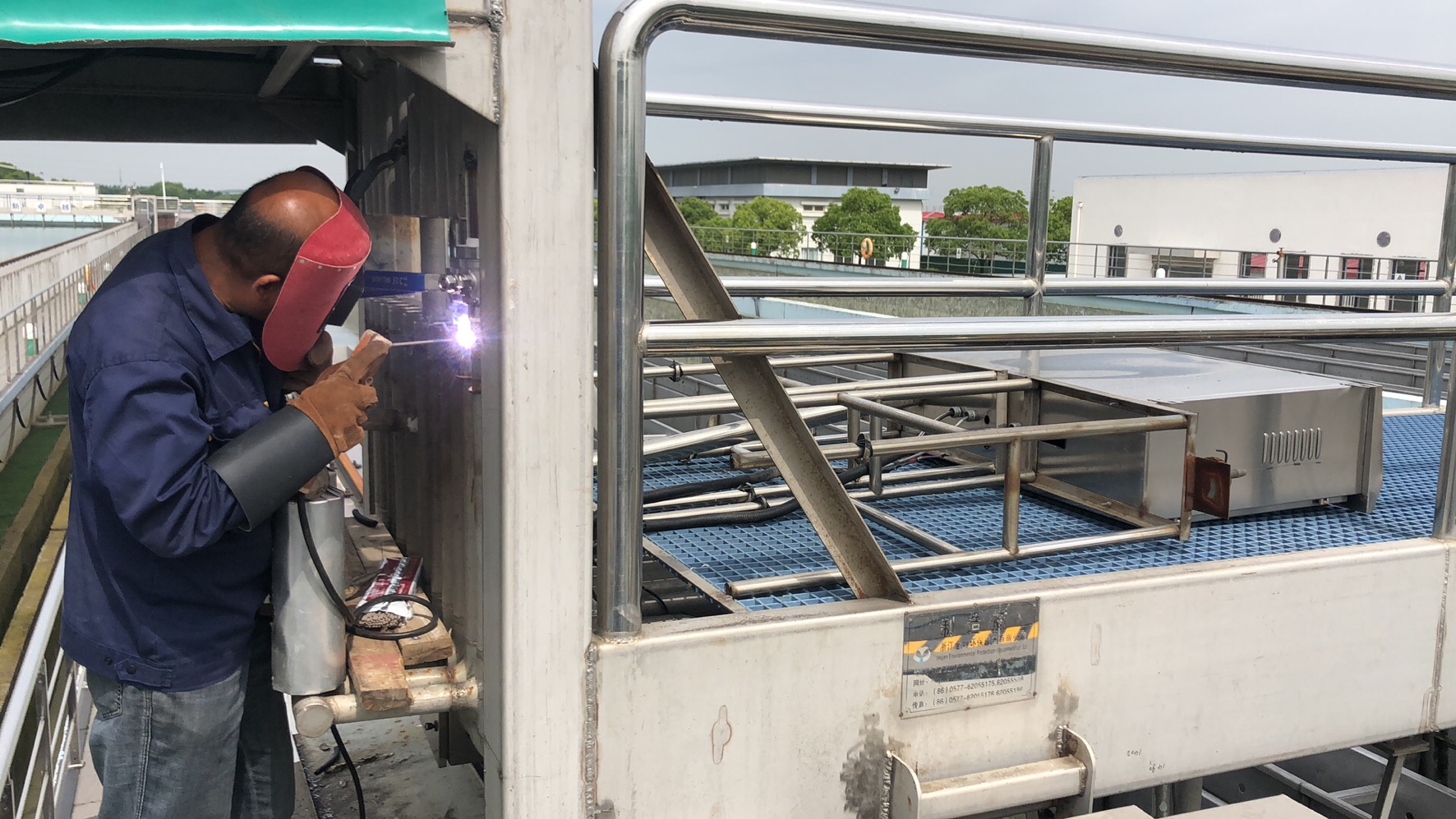 相城水厂沉淀池的排泥行车阀门原为铜制材料,使用至今已近14年,可能出现老化现象,对沉淀池正常排泥有潜在的影响。为此,水厂将虹吸排泥管上52个、反冲洗管上24个铜制阀门全部更换为不锈钢阀门。从移除配电柜、切割排泥管、切口整修,到新阀门的组装和焊接,水厂严把每道工序的实施步骤,在保障安全生产的前提下有条不紊地完成了更换,并在进水调试合格后投入使用。