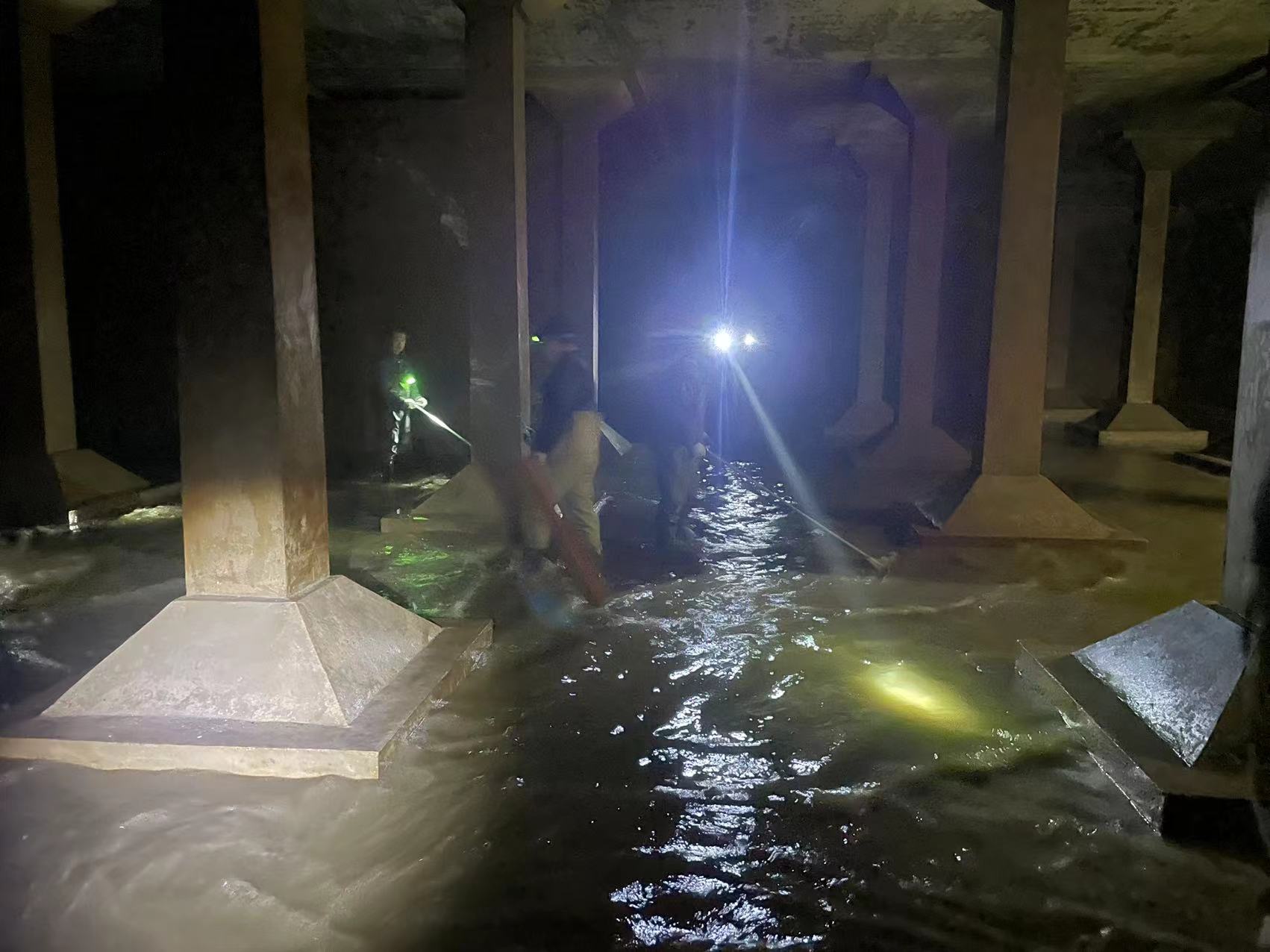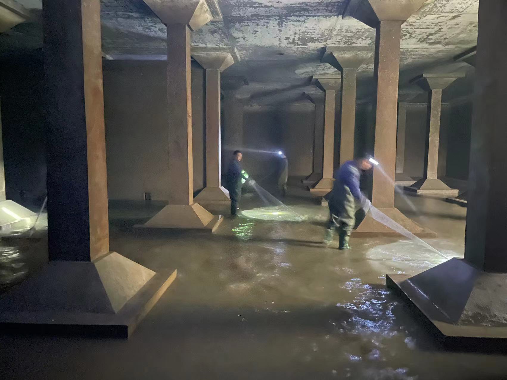 为不影响正常供水生产,相城水厂提前做好净水构筑物清洗分阶段实施计划。通过一、二期水量调整,首先完成了二期沉淀池和一期炭滤池的清洗,随后重点展开1#清水池清洗。厂内制定了完备的清洗方案,提前准备抽水泵、排水管、照明灯、动力配电箱等相关设备、工具,同时还对清水池周边的阀门进行了仔细检查。清洗人员相互配合开展清洗工作,厂部和施工单位全程做好有限空间作业、设备操作、人员管控、安全防护等工作,经水质检验合格后清水池顺利投入使用。