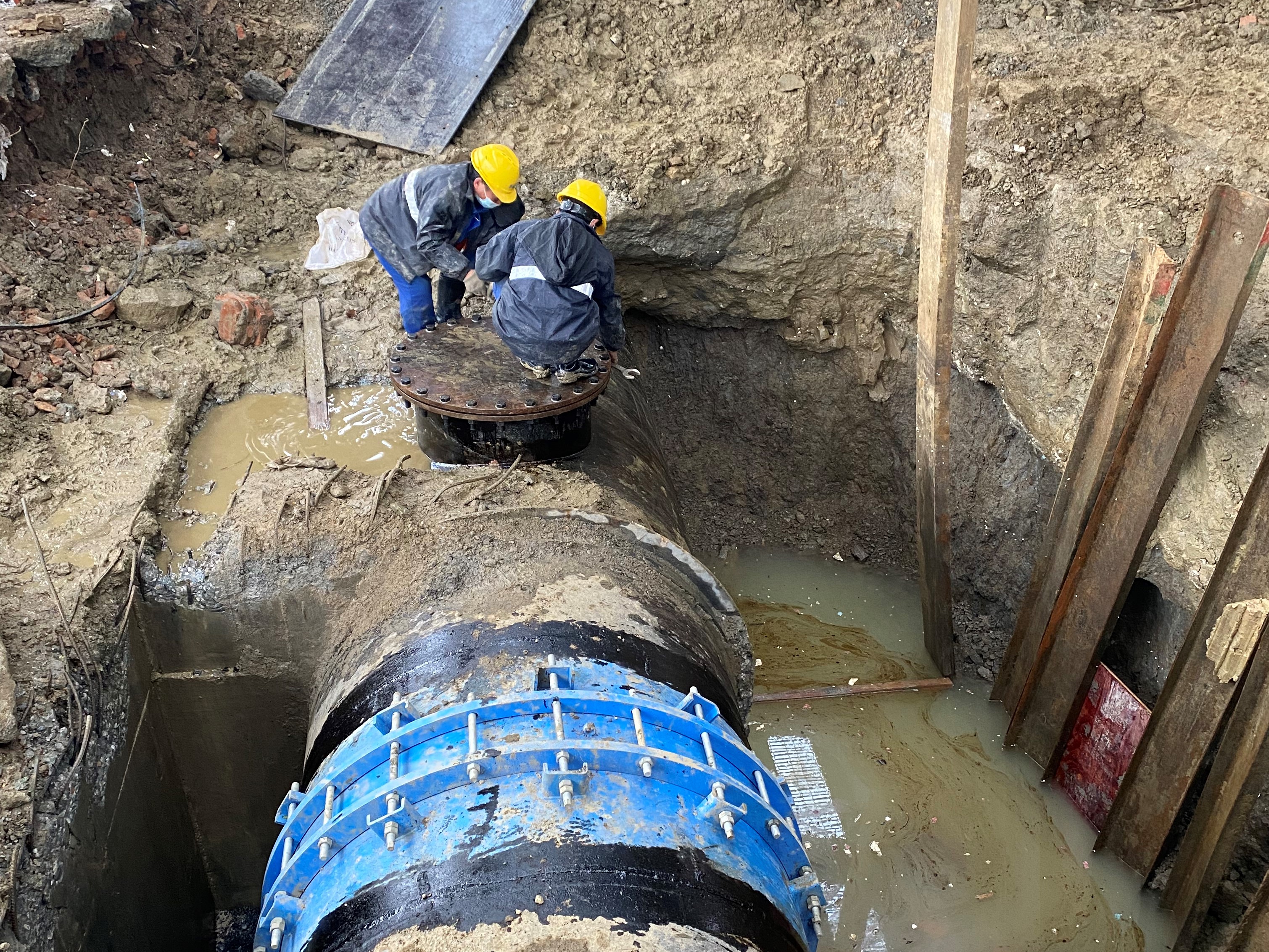 此次在道路施工中受损的管道是相城水厂和白洋湾水厂的主要原水管,为保障两个水厂的正常原水供应,公司紧急启用备用水源西塘河作为应急供应。现场开挖后,工作人员发现管道伸缩器受损,公司抢修力量克服了时间短、任务重的困难,于3月3日10点至4日10点期间持续开展抢修施工,顺利更换DN1800管道伸缩器,原水管线在24小时内恢复正常供水。