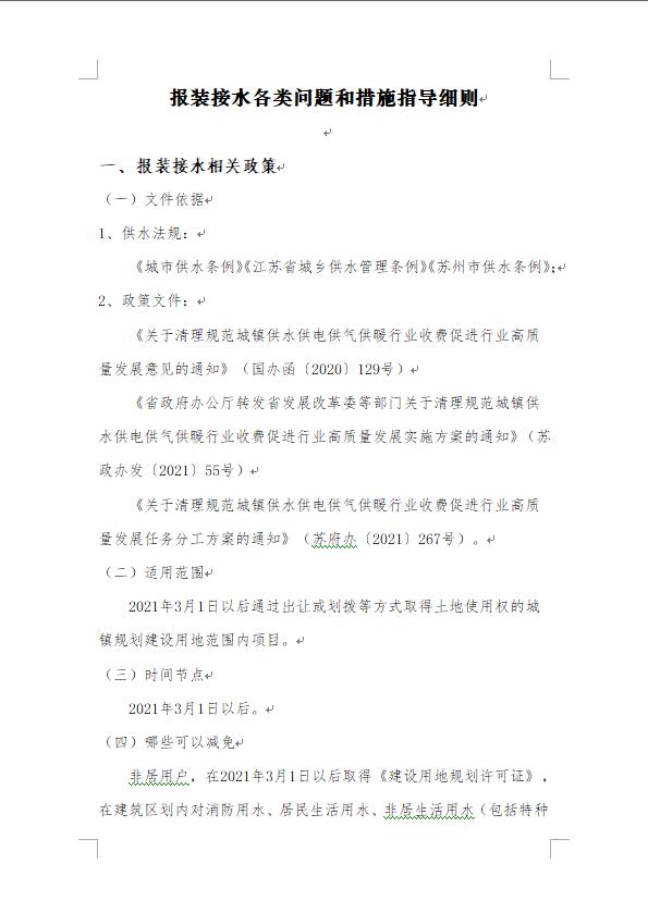 公司持续简化办事程序、优化接水报装流程,大幅缩短接水申办时间,对符合条件的用户免除接入费用,规范、高效满足用户用水需求。同时,积极推行容缺受理机制,增加自助终端,大力推行网络申请,建立多种申请途径,精准分流,以满足不同人群报装需求。公司还编制了《报装接水各类问题和措施指导细则》,从政策解读、减免时间和范围、装表种类等内容进行了详细讲解,共总结21条问答,形成了统一的报装接水服务标准。截止目前,公司上半年受理工商用户报装接水共计65个,最快办结时间不超过2个工作日,平均办件时效较21年提速约25%。