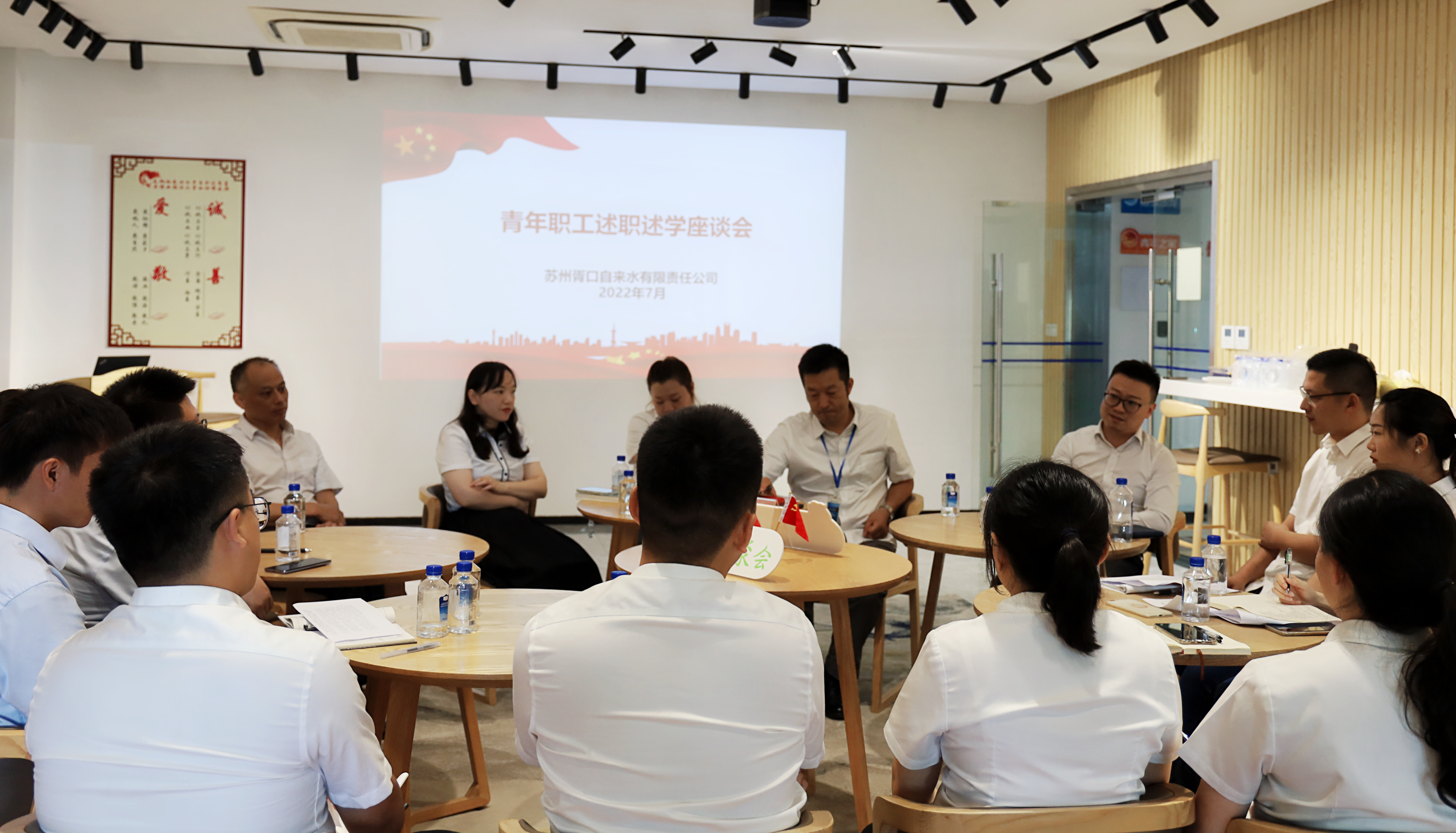 为迎接党的二十大召开,激发青年职工工作活力, 7月27日,胥口水司特邀制水分公司青年职工代表一同召开“青年职工述职述学座谈会”。