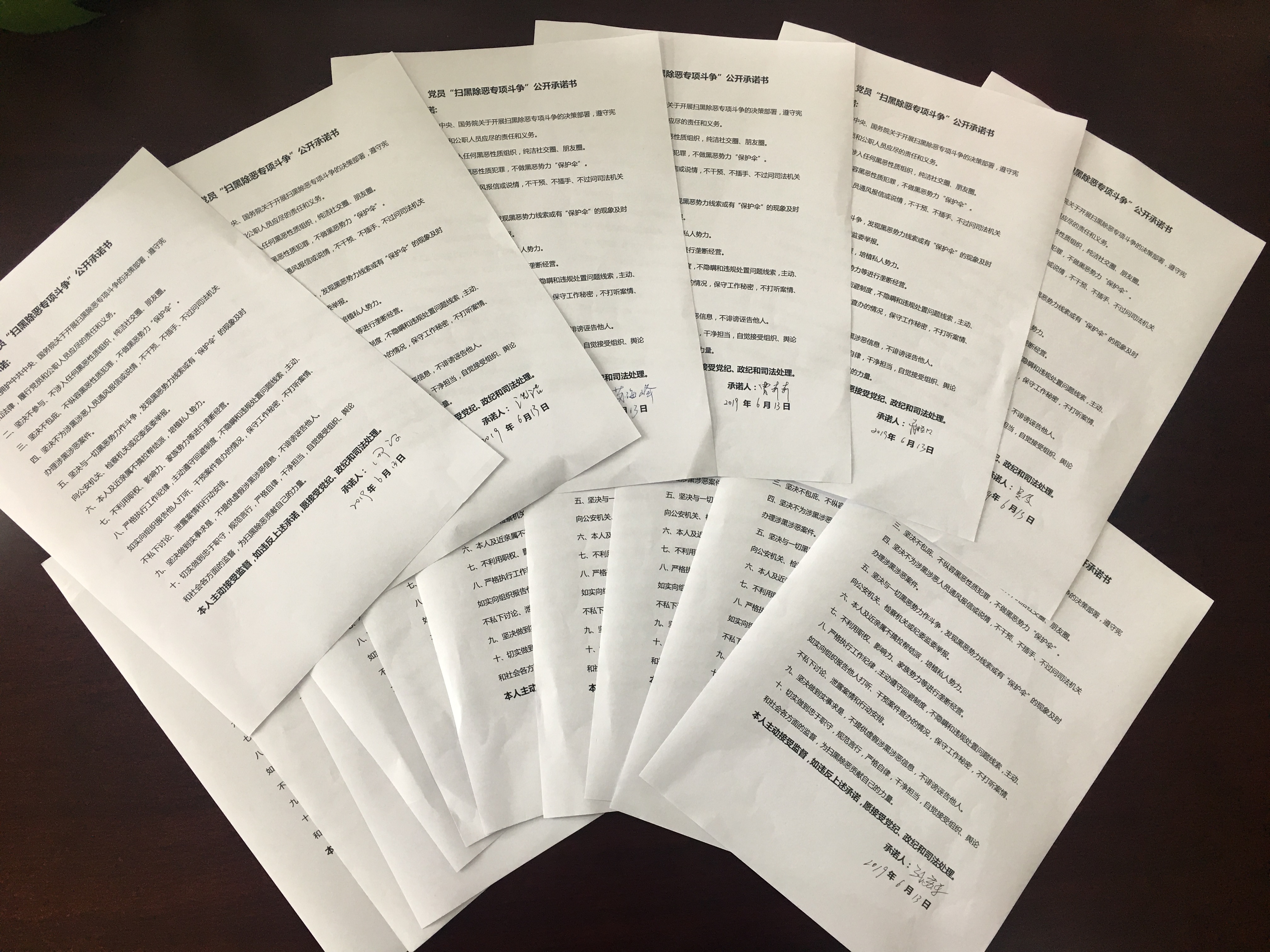 依法开展扫黑除恶是人民安居乐业之基,是社会长治久安之道,通过学精神、看视频、签承诺、做答卷等多种形式,党员干部们进一步提高警惕、筑牢防线,规范自己的行为、规范办事流程,共同营造和谐清正的工作氛围和社会风气。