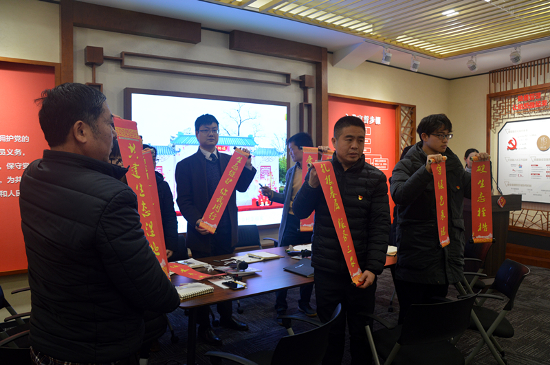 活动中,两所党员们一起聆听了习总书记2019年新年贺词《我们都是追梦人》。随后,镇湖街道农林服务中心党支部许书记向大家报告了2018年度党建工作总结暨2019年度工作部署。农林服务中心的党员们现场“表决心、亮承诺”,并亲手制作岗位承诺卷轴和岗位工作牌接受群众监督。最后,大家还参观了刺绣艺术馆,了解了镇湖刺绣发展史。