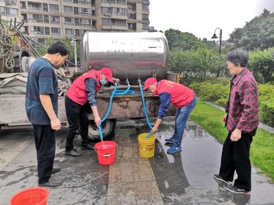 由于抢修正值用水高峰时段,路面开挖点的正下方还有四根供水管网并列排布,给抢修工作造成了不小困难。为保障小区居民的用水需求,管网所党支部立刻安排党员队伍轮班送水,配合抢修工作同步进行。当班党员们按照应急排班表,有条不紊开展送水行动,从四点一直忙碌到晚上八点半,直到抢修完成恢复供水后才离开。