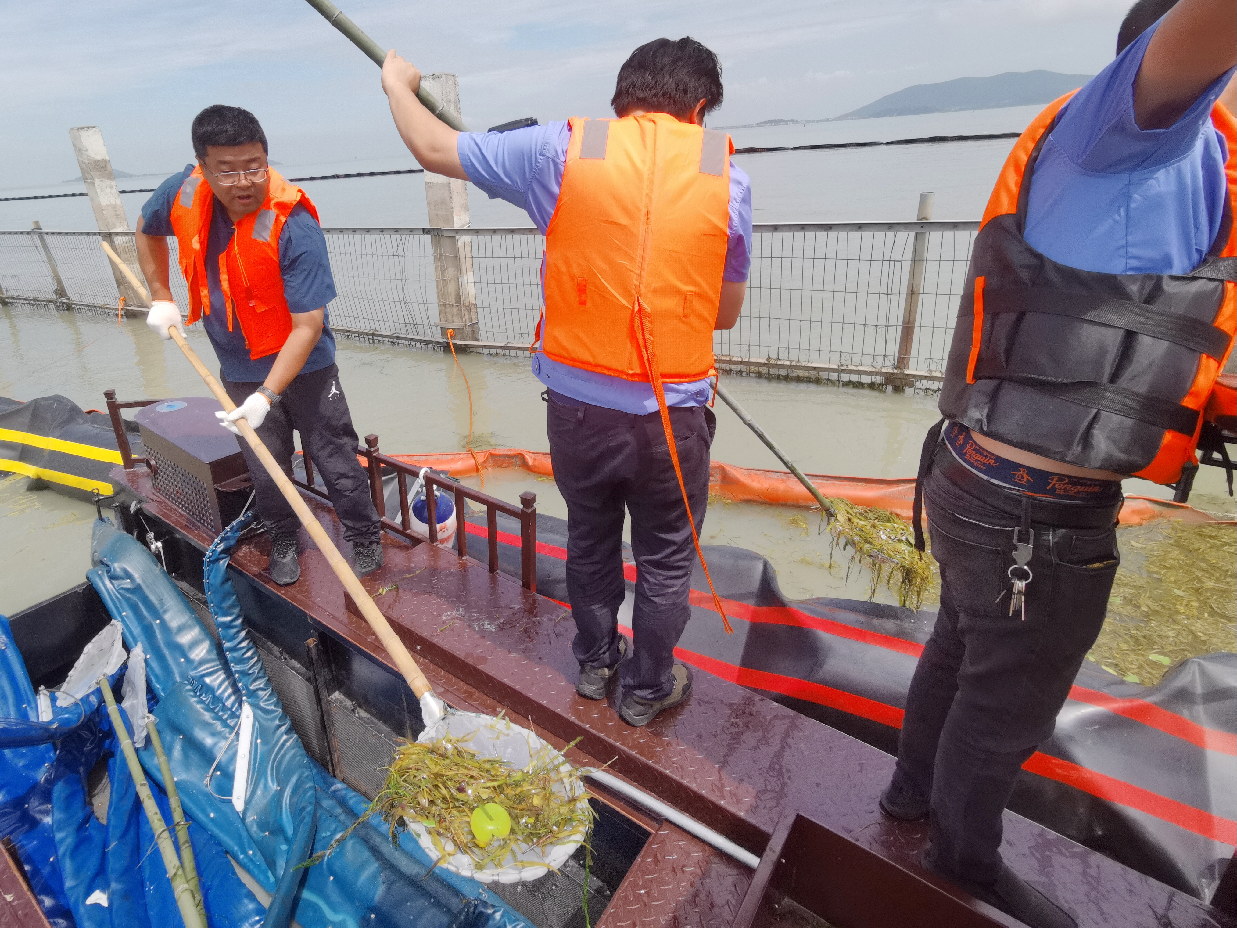 太湖藻类打捞工作是每年夏季水源地保洁的重要内容,全体党员现场观摩了蓝藻打捞船工作情况,并深入打捞一线,学习现场管理工作,用实际行动展现初心与使命。