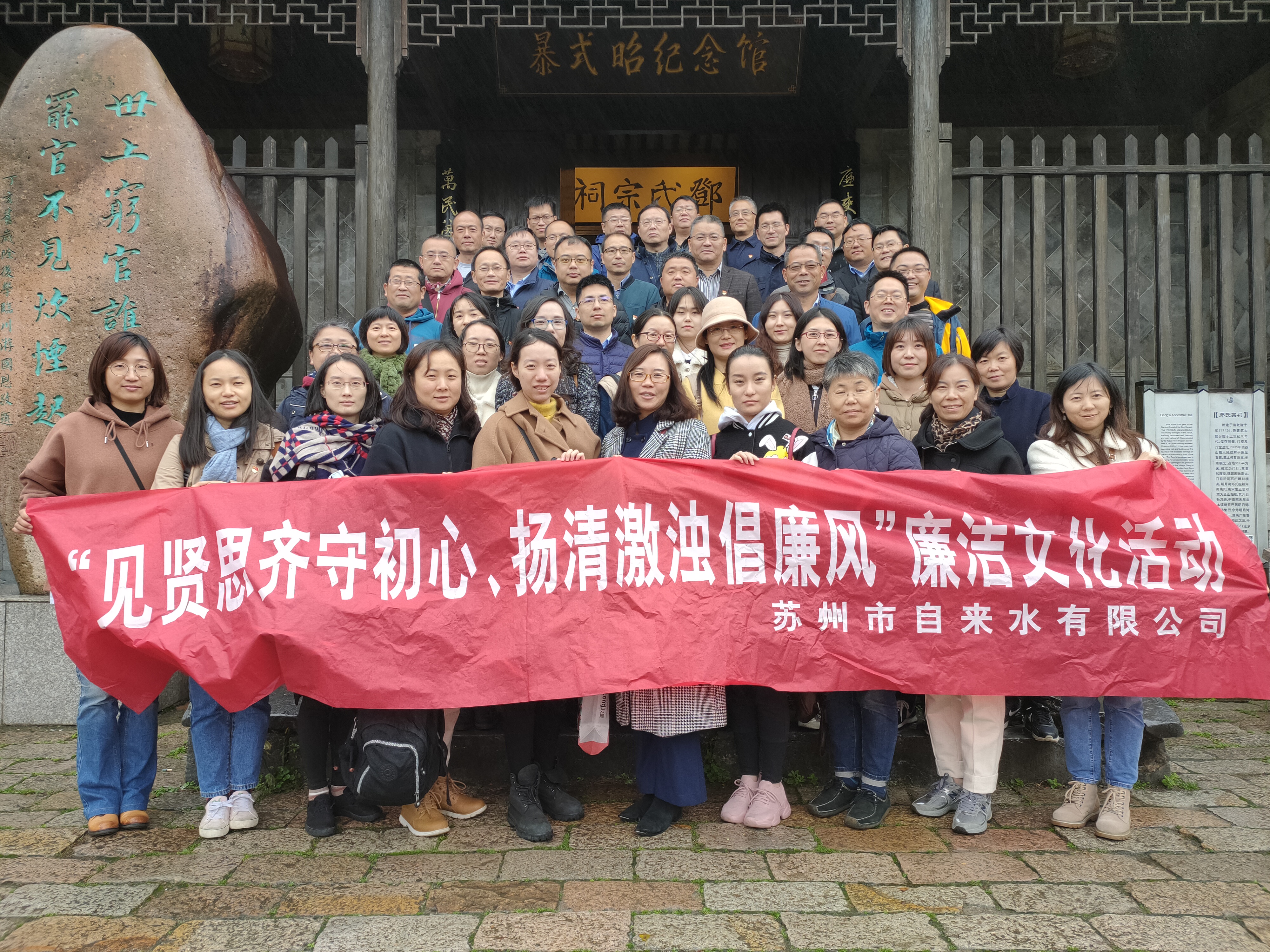 为深入开展党风廉政教育,进一步增强领导干部、关键岗位人员对“明大德、守公德、严私德”的感召认同,更好地凝聚“以文化人、向善向上”的精神动力。近日,公司纪委组织开展“见贤思齐守初心、扬清激浊倡廉风”廉洁文化主题教育活动,赴干部政德教育基地况公祠、廉政教育基地暴式昭纪念馆参观学习。接受廉洁文化洗礼和熏陶,公司领导班子、中层干部、部分重点岗位工作人员五十余人参加此次活动。