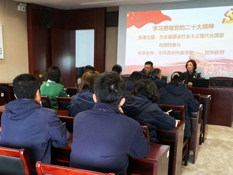 为深入学习宣传贯彻党的二十大精神,切实把思想和行动统一到党的二十大精神上来,更好地引导党员深入开展学习,11月23日下午,公司邀请中共江苏省城市足球赛官网市委党校田坤教授以《为全面建设社会主义现代化国家而团结奋斗》为主题为支部全体党员讲授党的二十大精神专题党课,制水分公司党支部部分党员也一同收听了该党课。