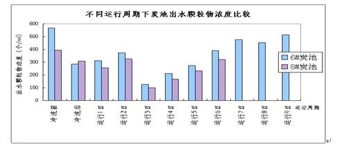 图 1 不同运行周期下炭池出水颗粒物浓度比较